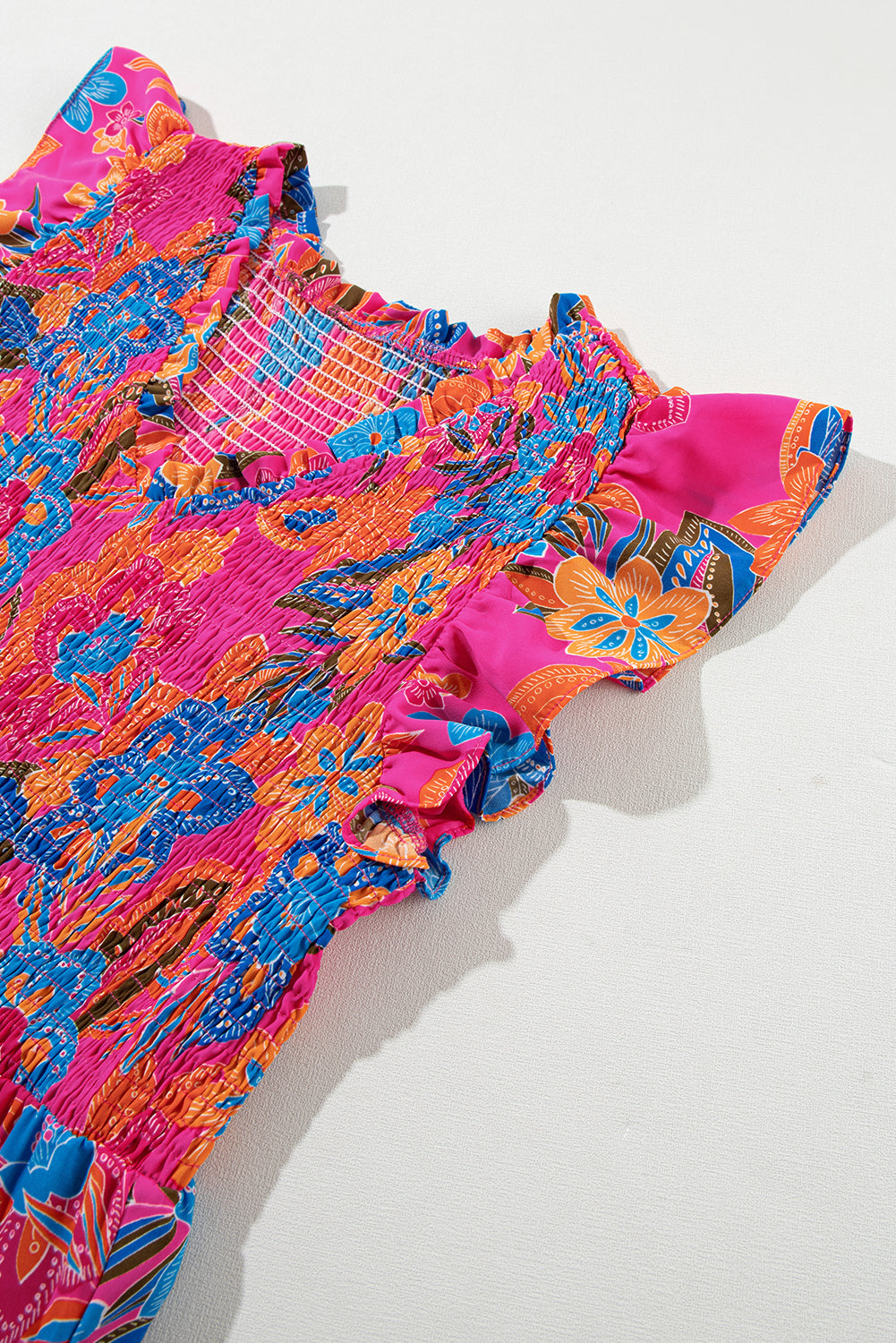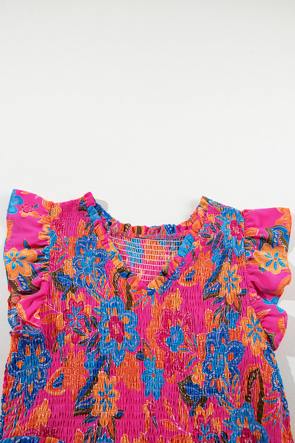 - The delicate ruffle trim on the v neckline and the short ruffle sleeves give it an effortless feel