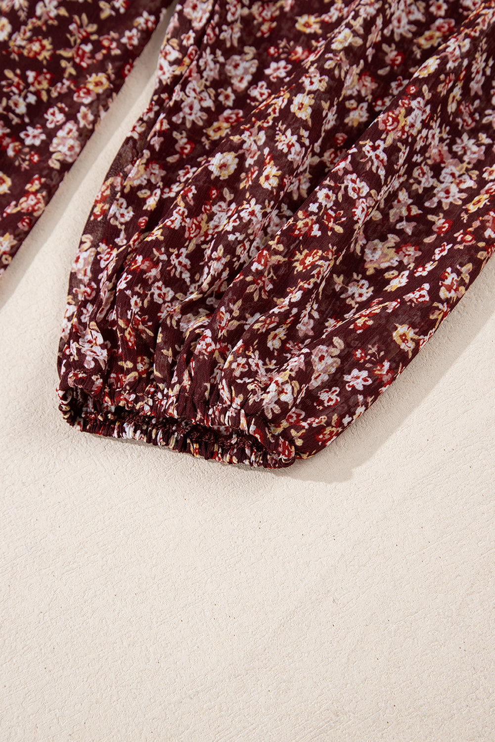 Red Floral Print Sweetheart Neck Shirred Back Mini Dress
