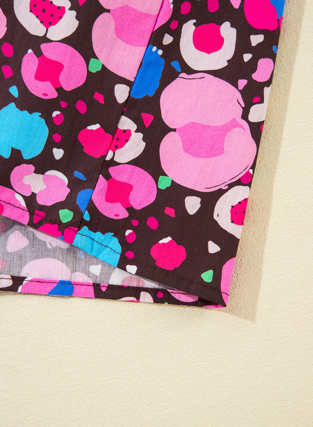 Rose Abstract Print V Neck Collared Half Sleeve Short Dress