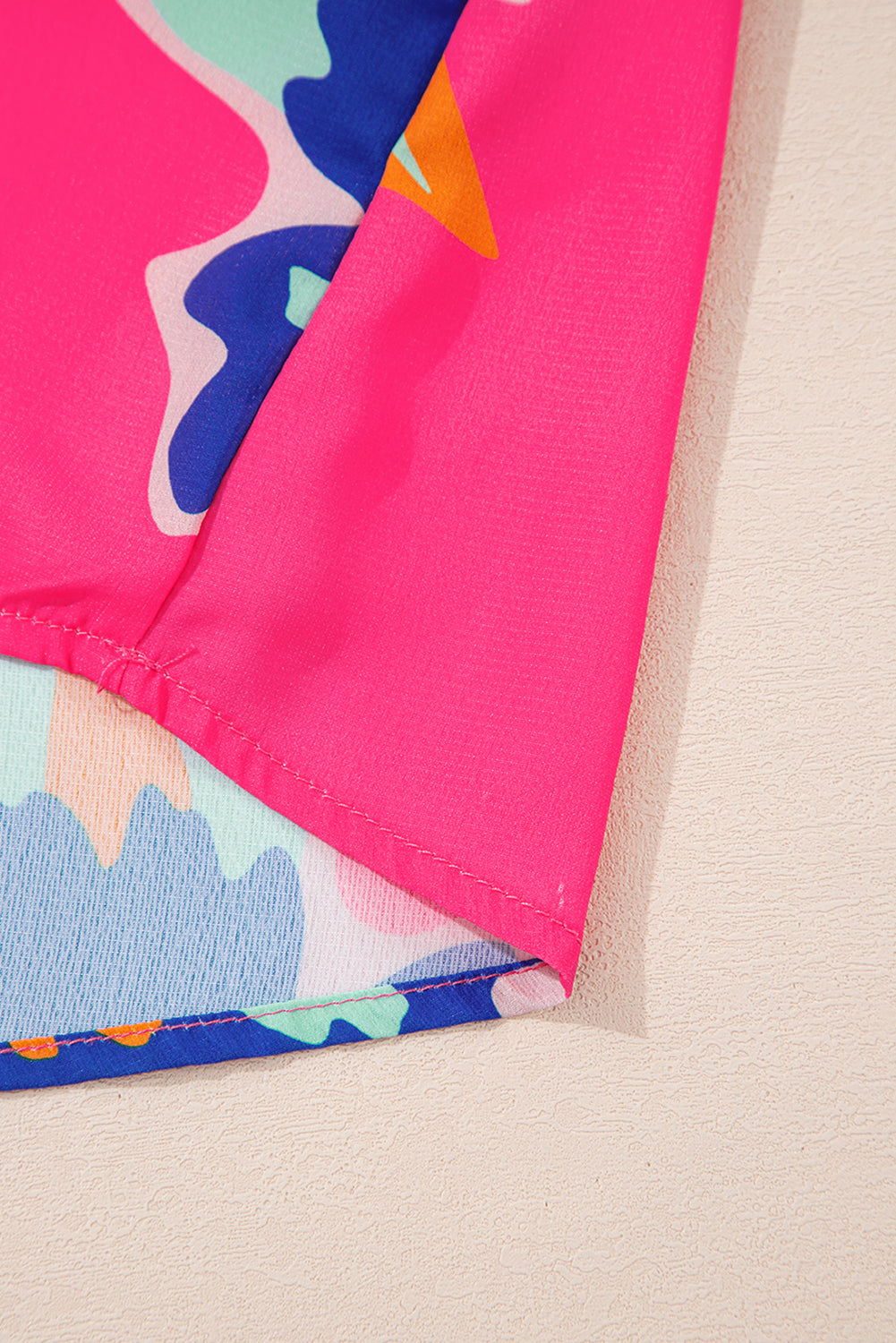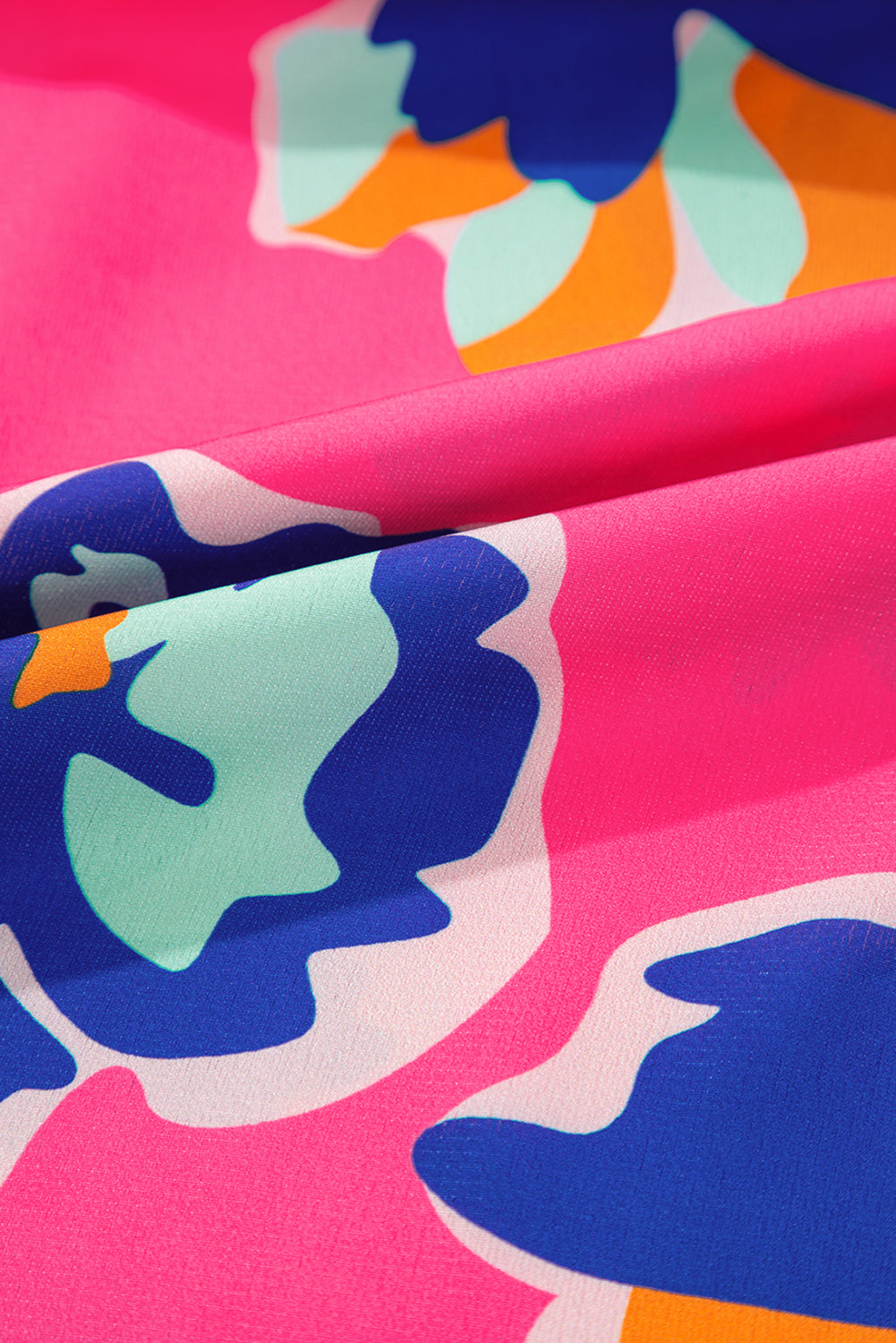 Rose Floral Pattern V Neck Balloon Sleeve Plus Size Blouse