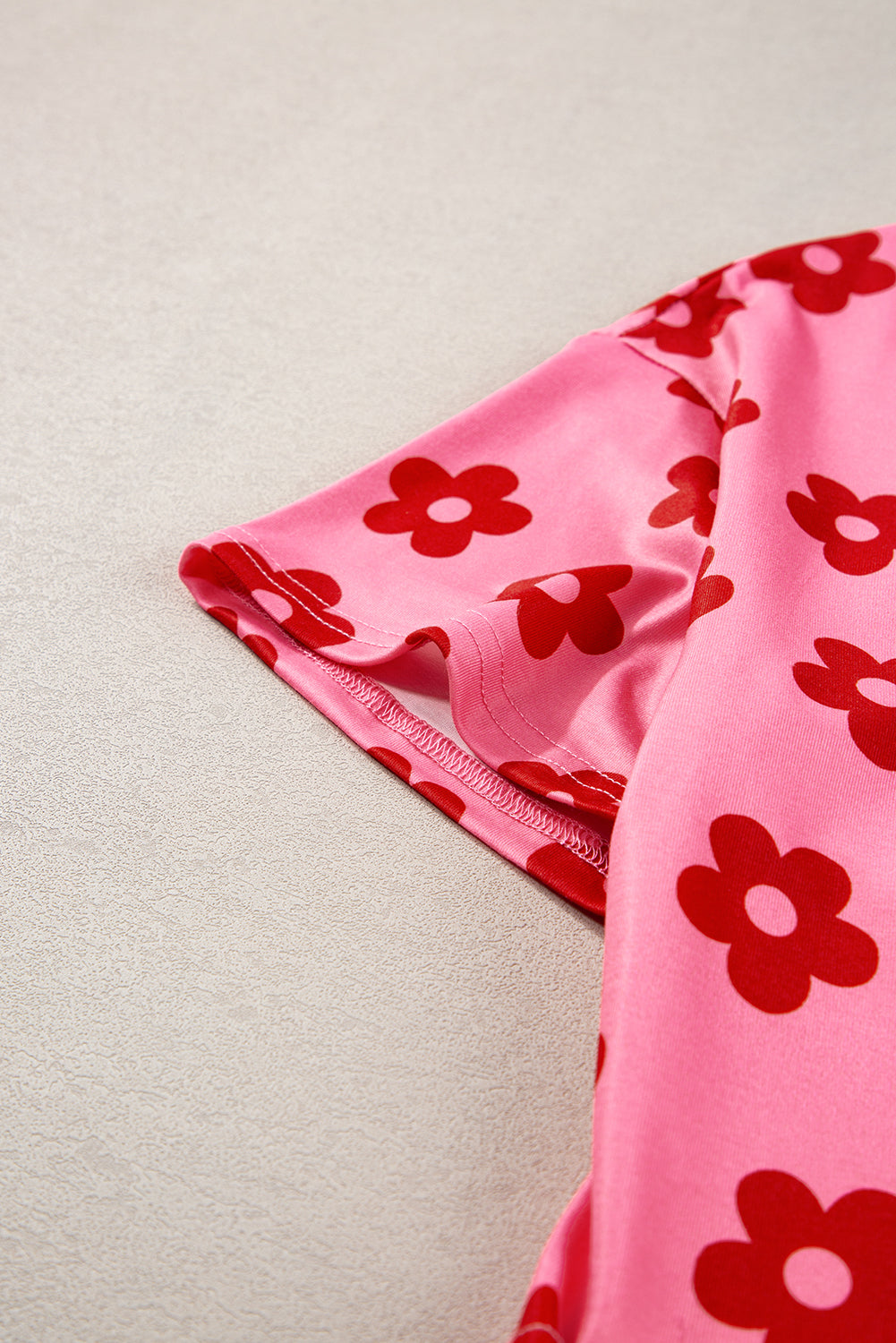 Rose Floral Print Crop Tee and Shorts Lounge Set