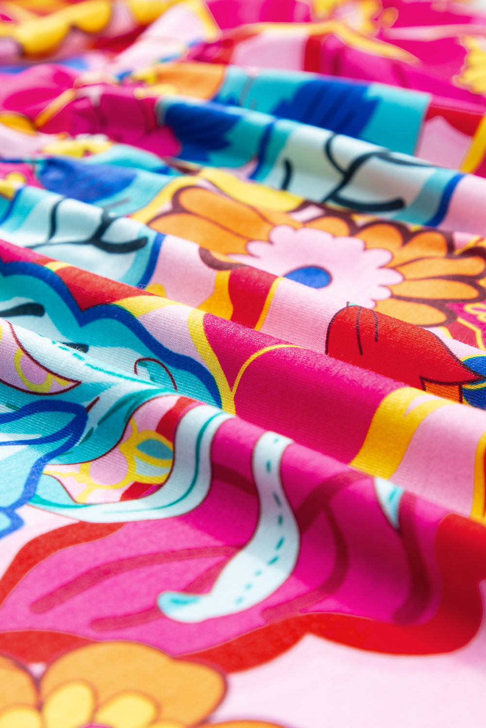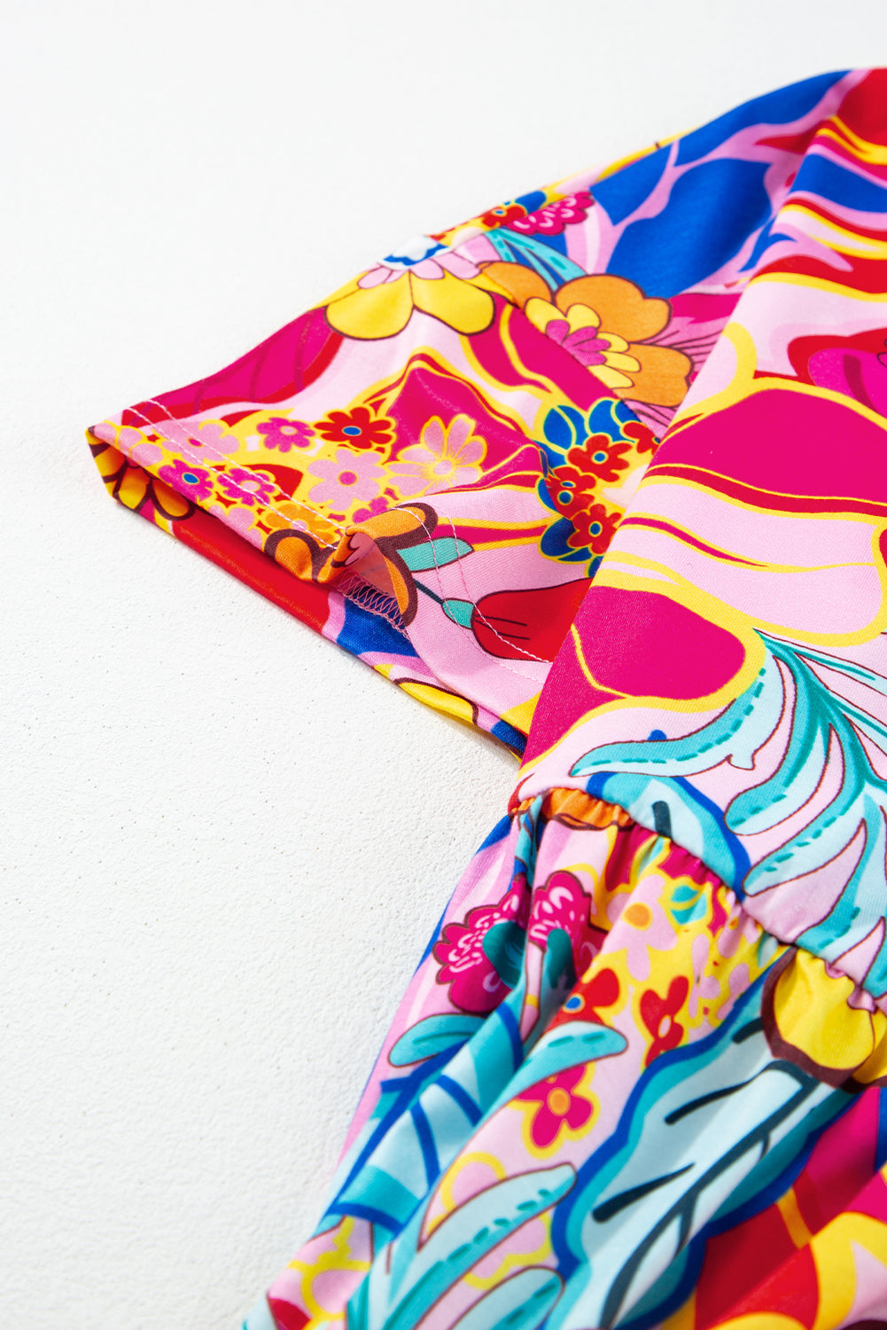 Rose Floral Print Short Sleeve Pleated Babydoll Top