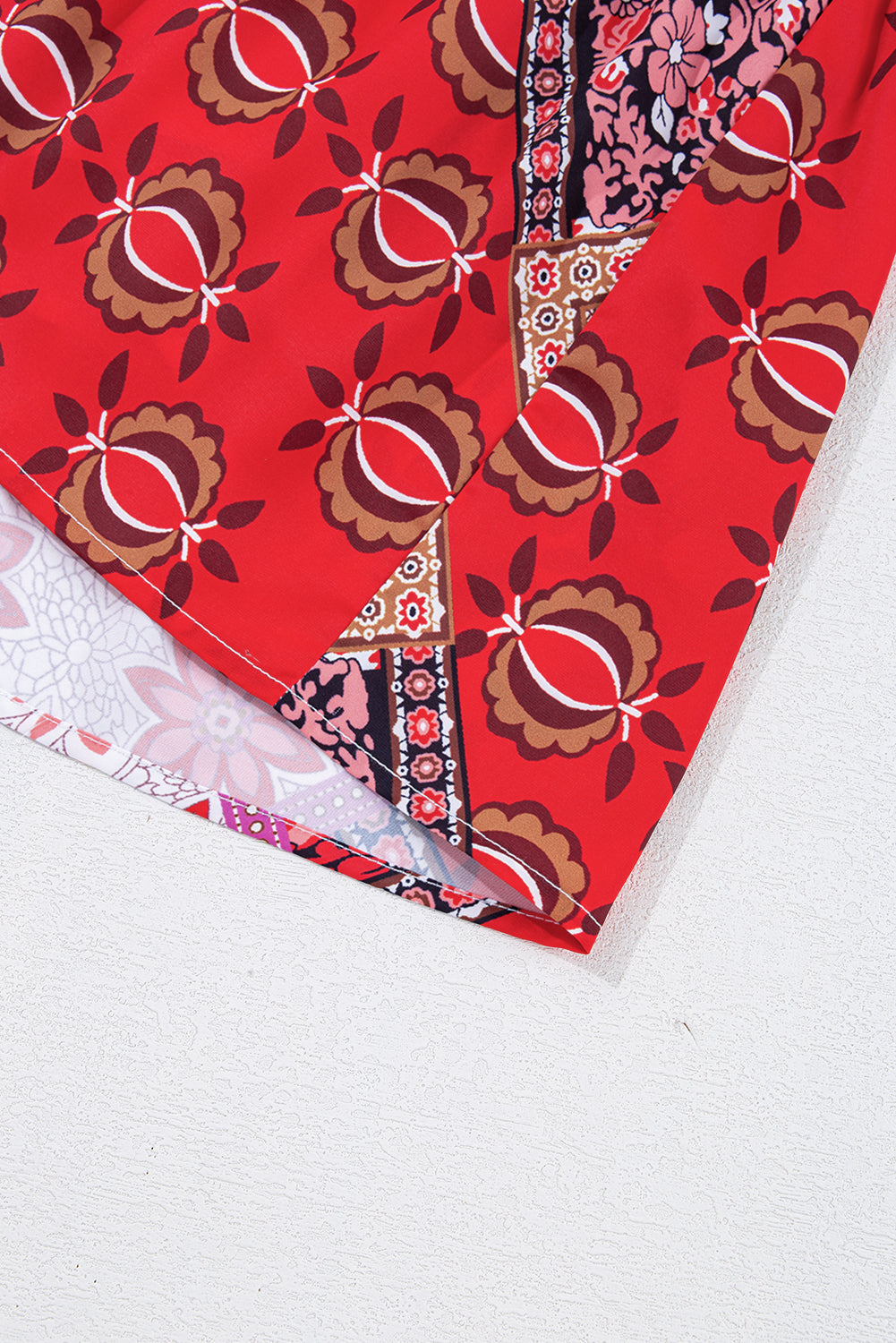 Rose Mixed Floral Long Sleeve V Neck Lace-up Hollowed Back Plus Size Dress