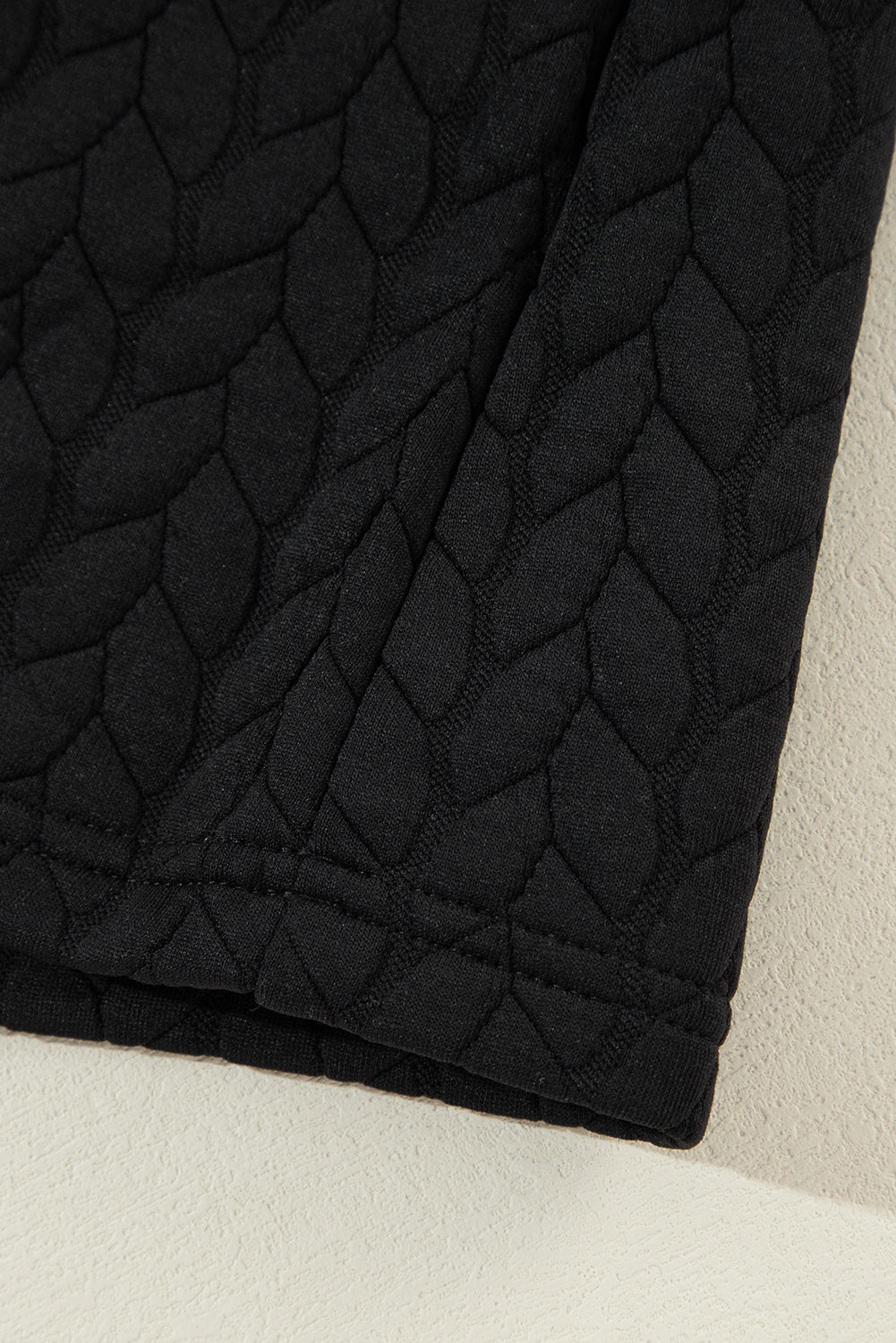 Rose Red Cable Textured Puff Sleeve Sweatshirt