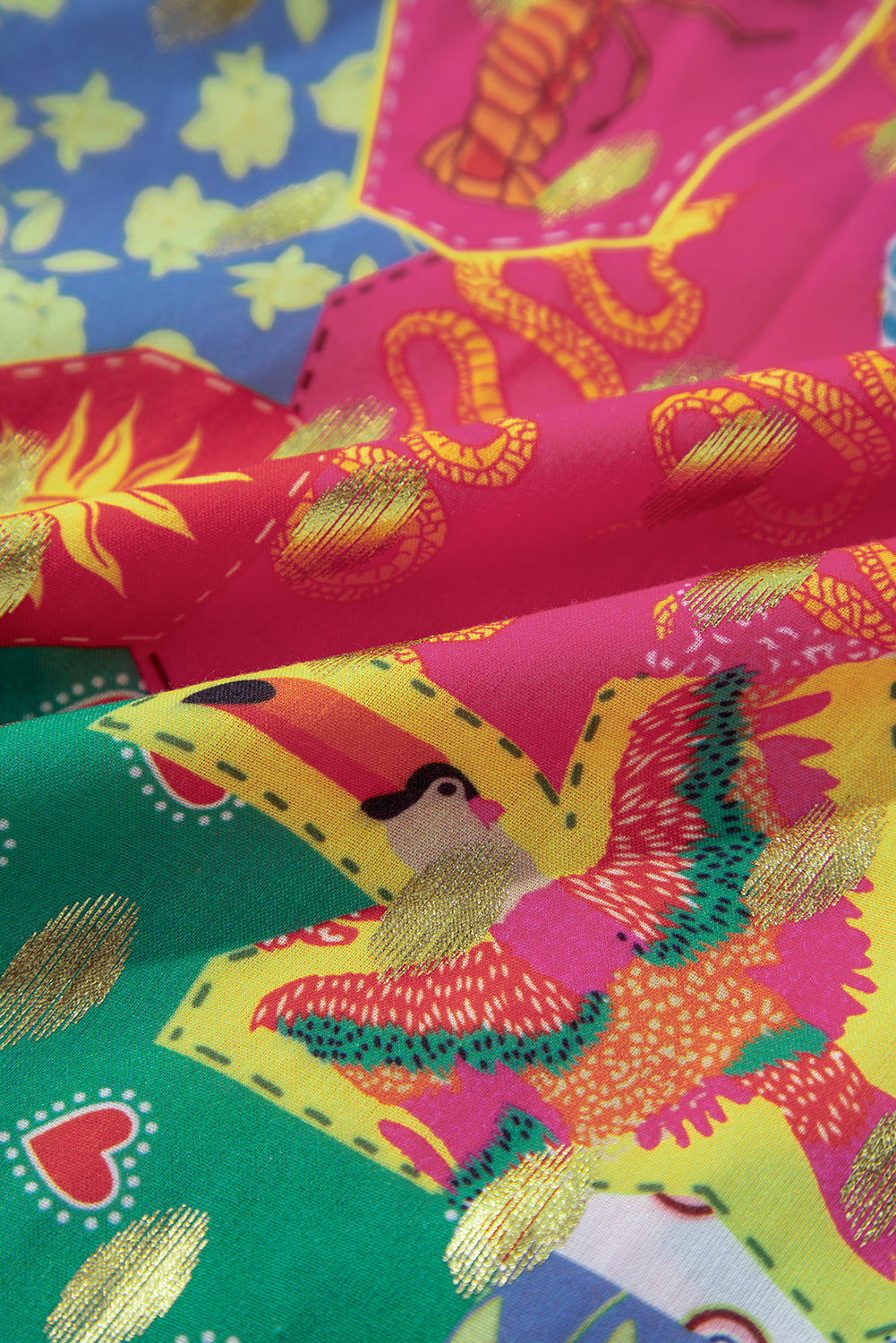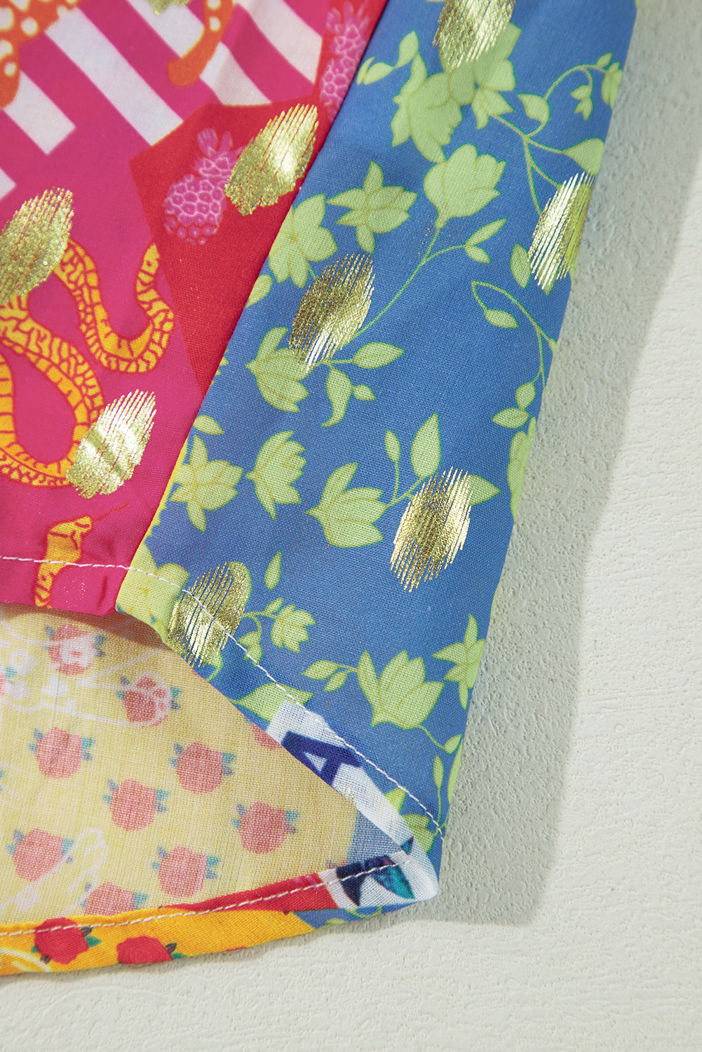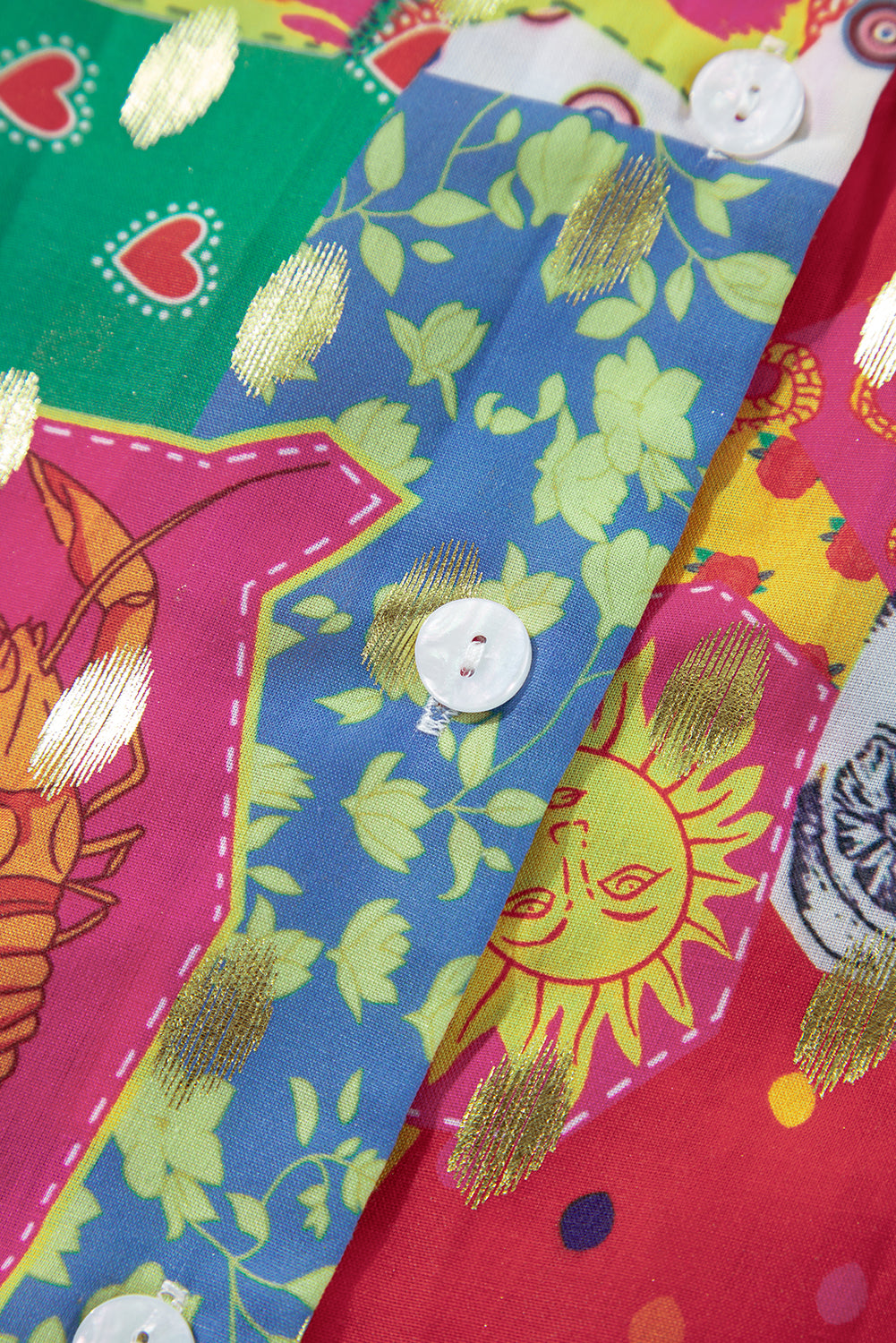 Rose Red Colorblock Abstract Print Button up Loose Shirt