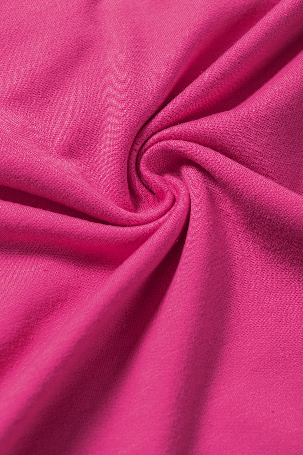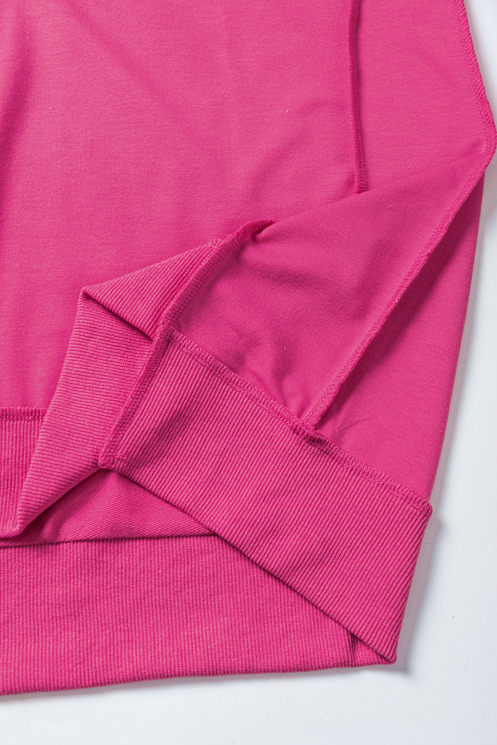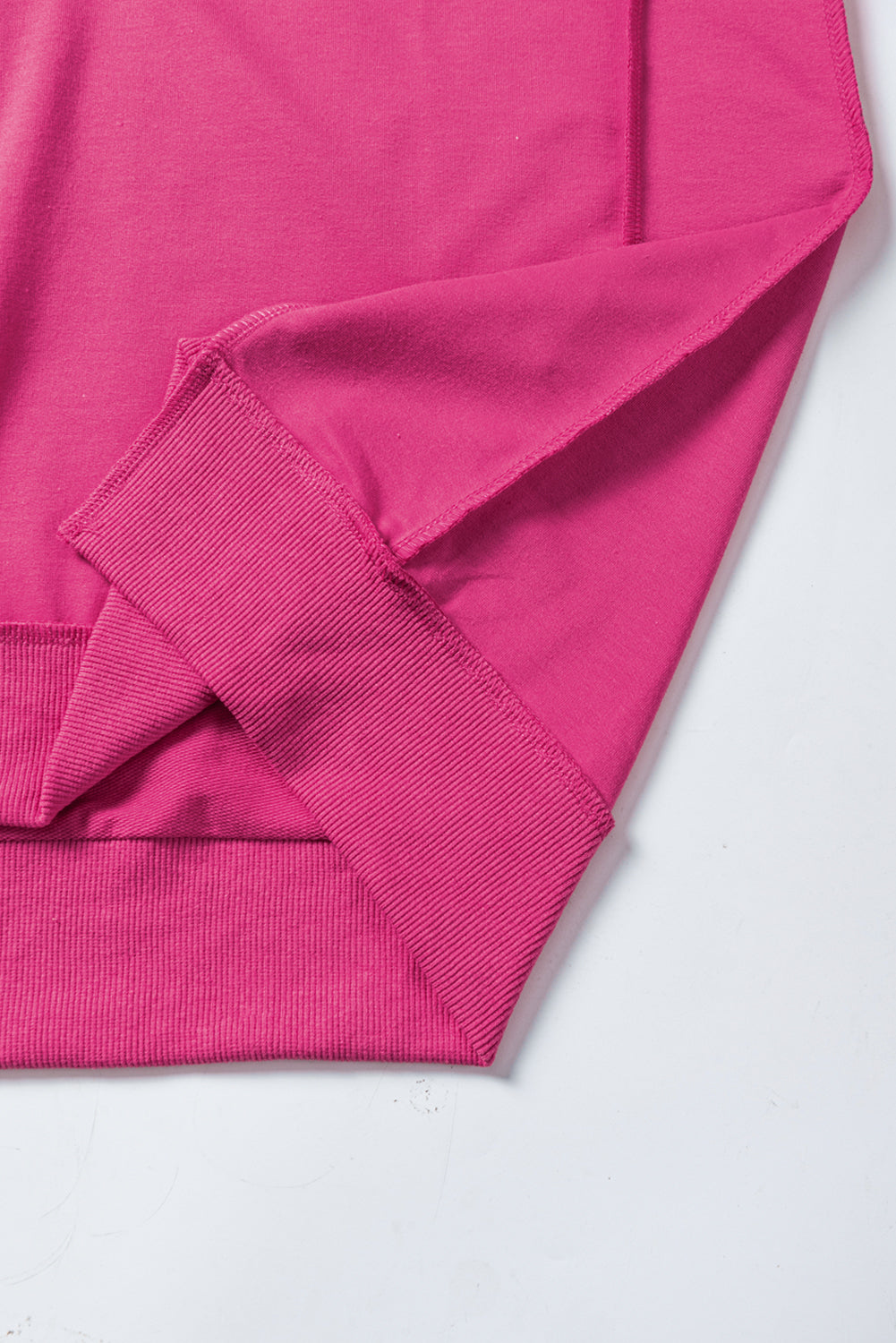 Rose Red Exposed Seam Button Neck Wide Sleeve Tunic Top