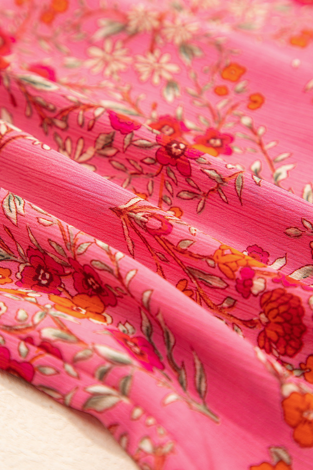 Rose Red Floral Print Wide Short Sleeve Loose Shirt