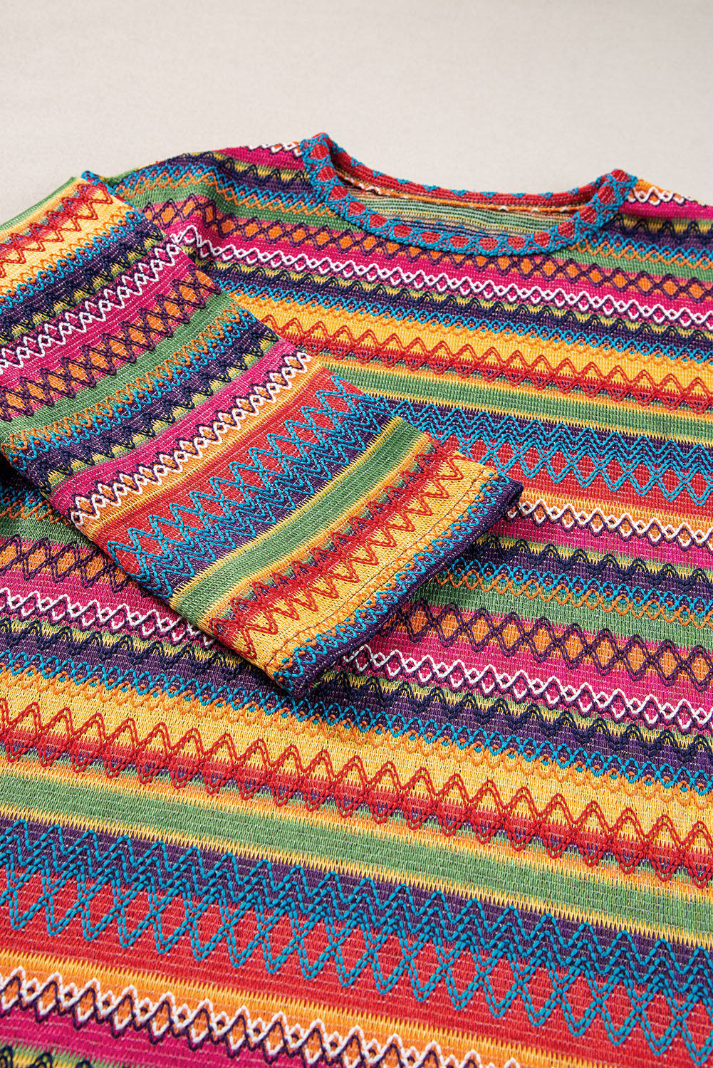 Rose Red Multicolor Jacquard Geo Long Sleeve T Shirt