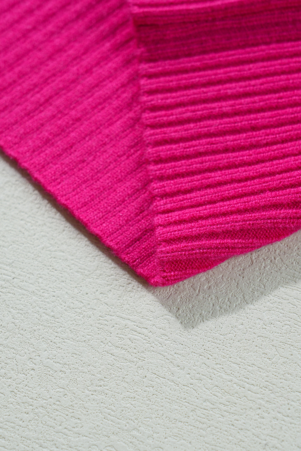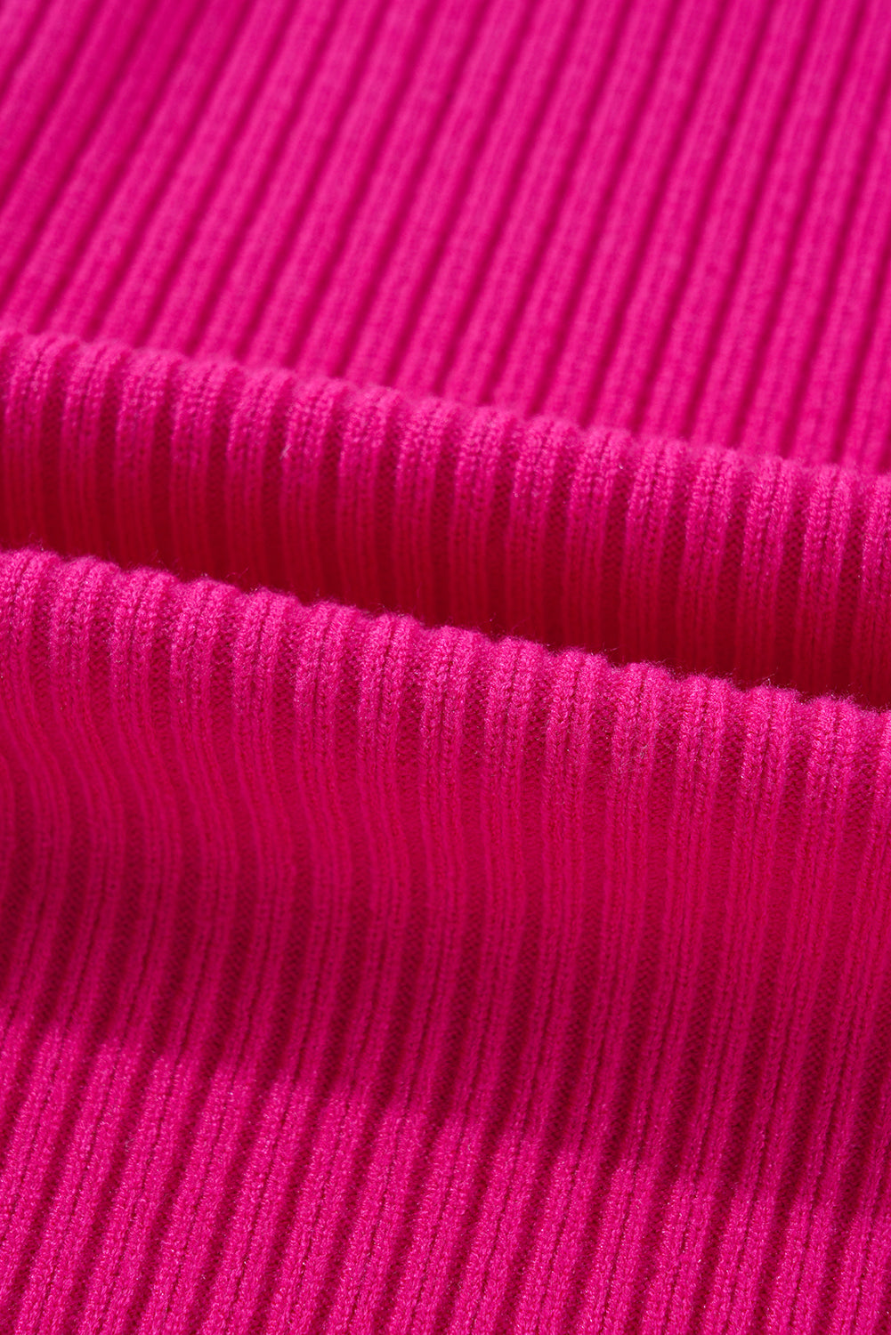 Rose Red Patch Pocket Ribbed Knit Short Sleeve Sweater
