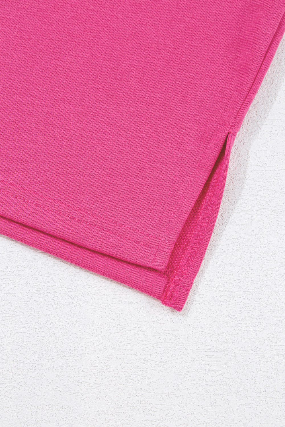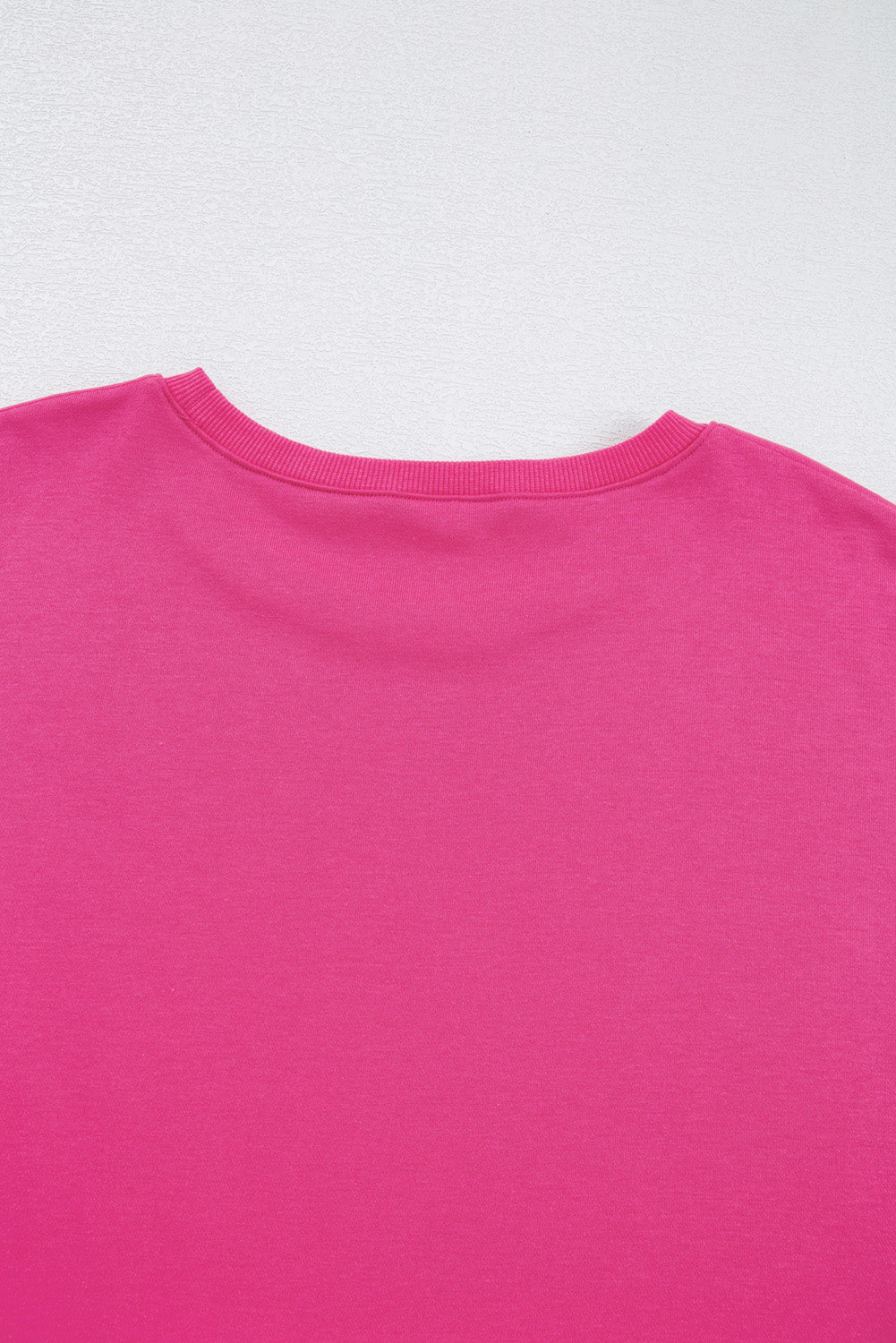 Rose Red Plus Size Printed Patchwork Sleeve Split Sweatshirt