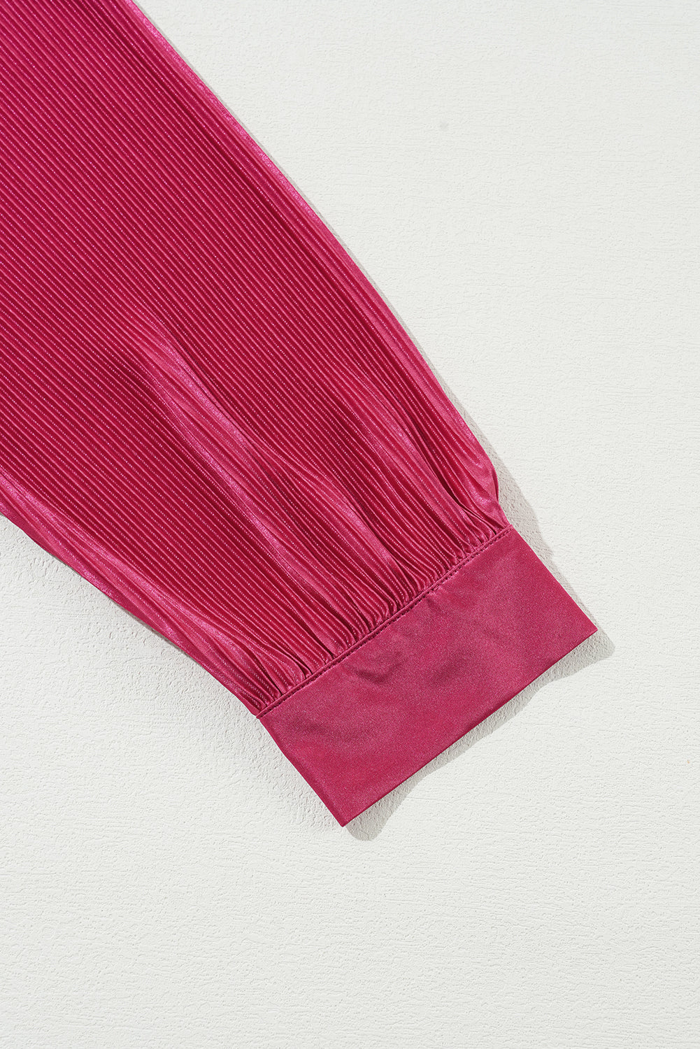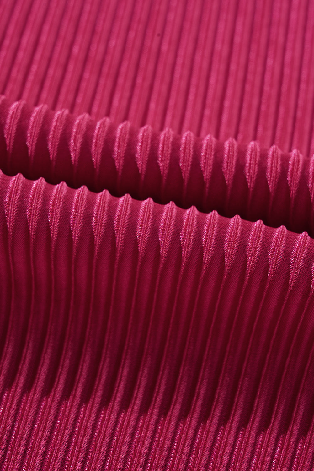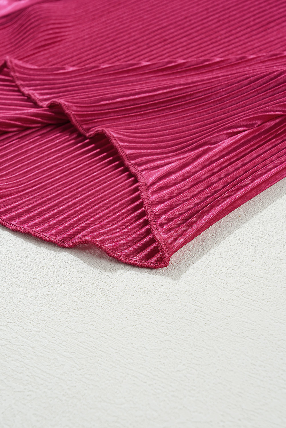 Rose Red Plus Size Ribbed Long Sleeve Shirt and Pants Pajama Set