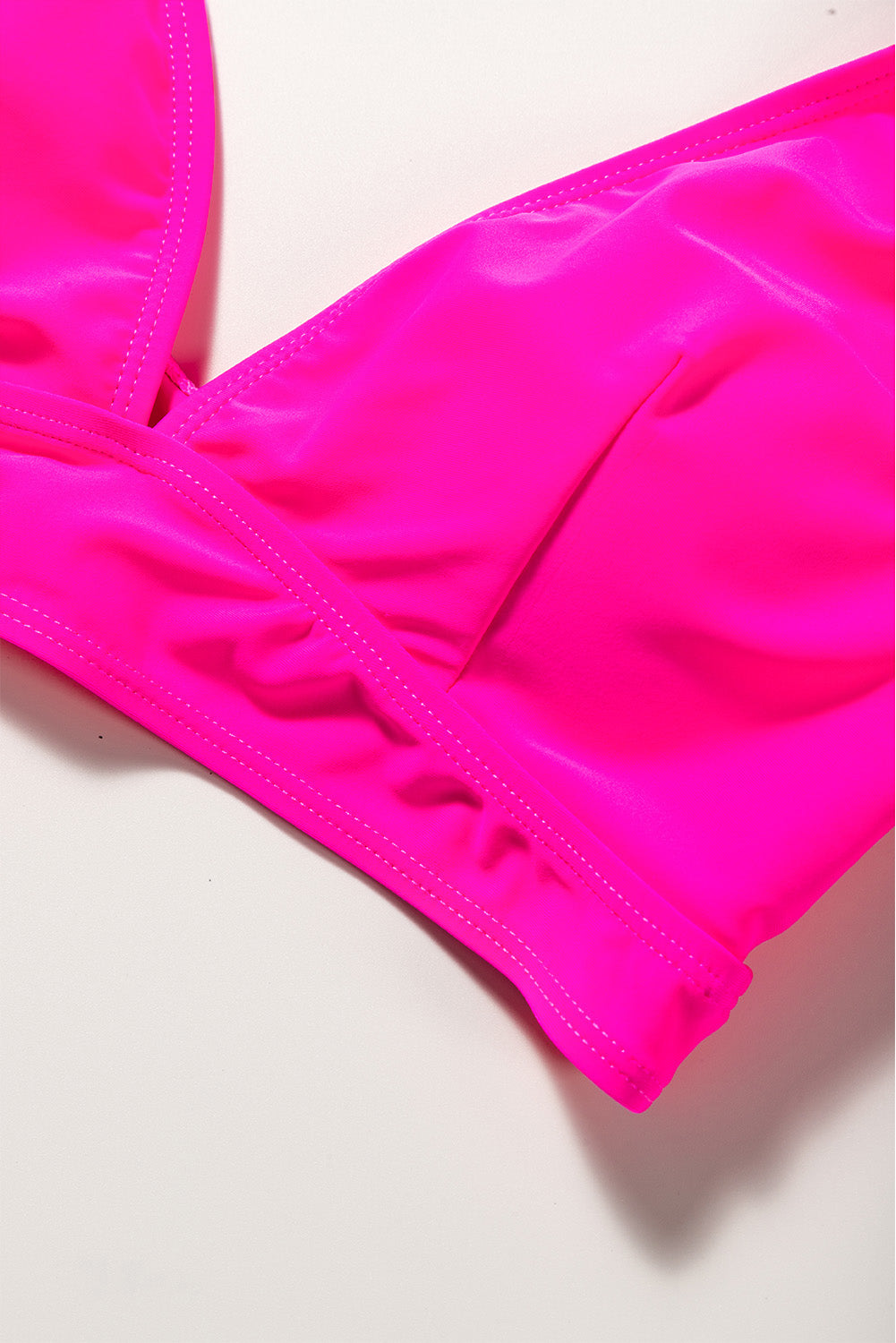 Rose Red Ruffled V Neck Swim Top