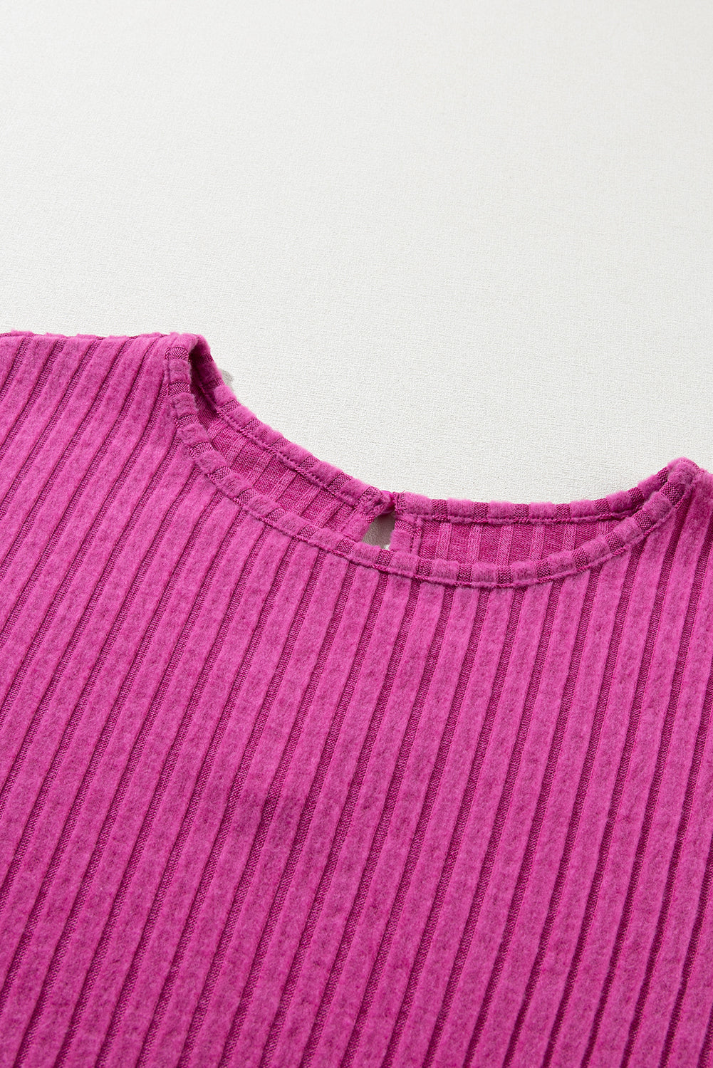 Rose Red Solid Color Ribbed Short Sleeve Wide Leg Jumpsuit