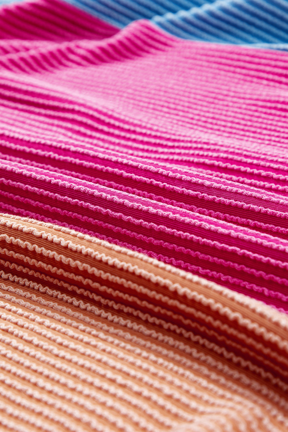 Rose Red Textured Colorblock Crew Neck T Shirt