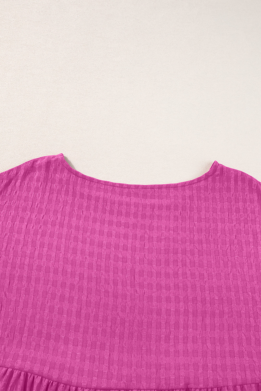 Rose Red Textured Ruffled Short Sleeve Mini Dress