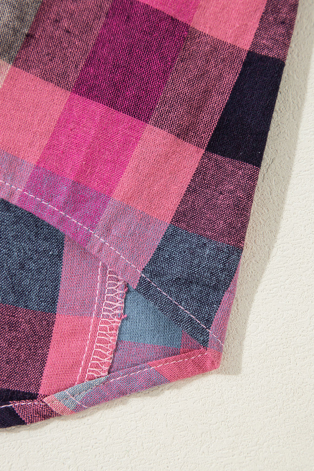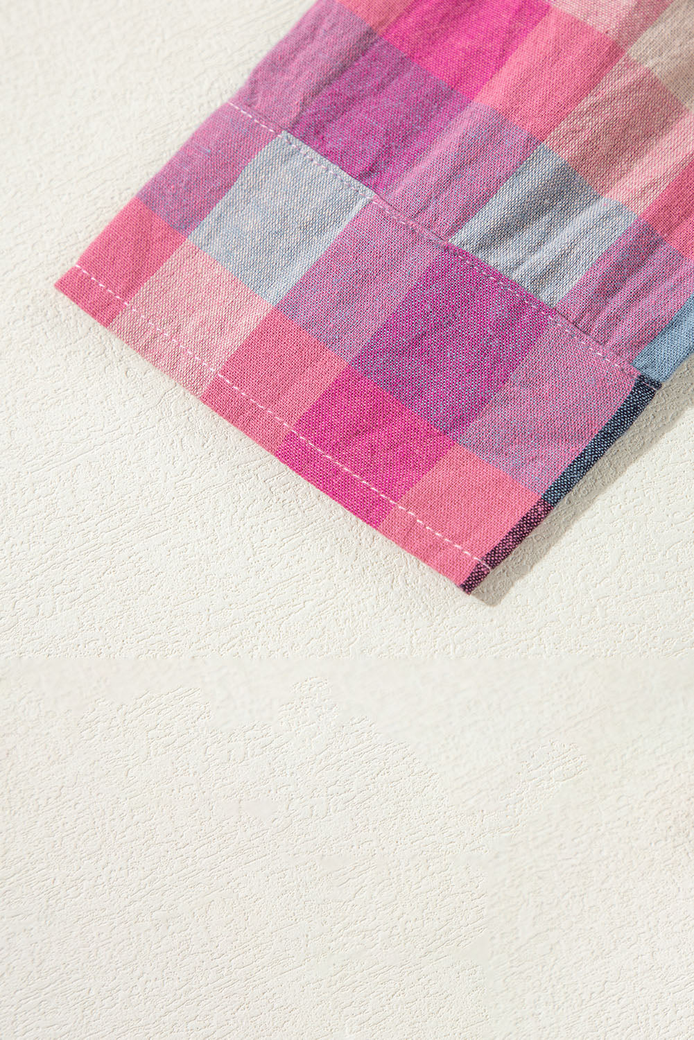 Rose Stripe Plus Size Checkered Print Button up Shirt
