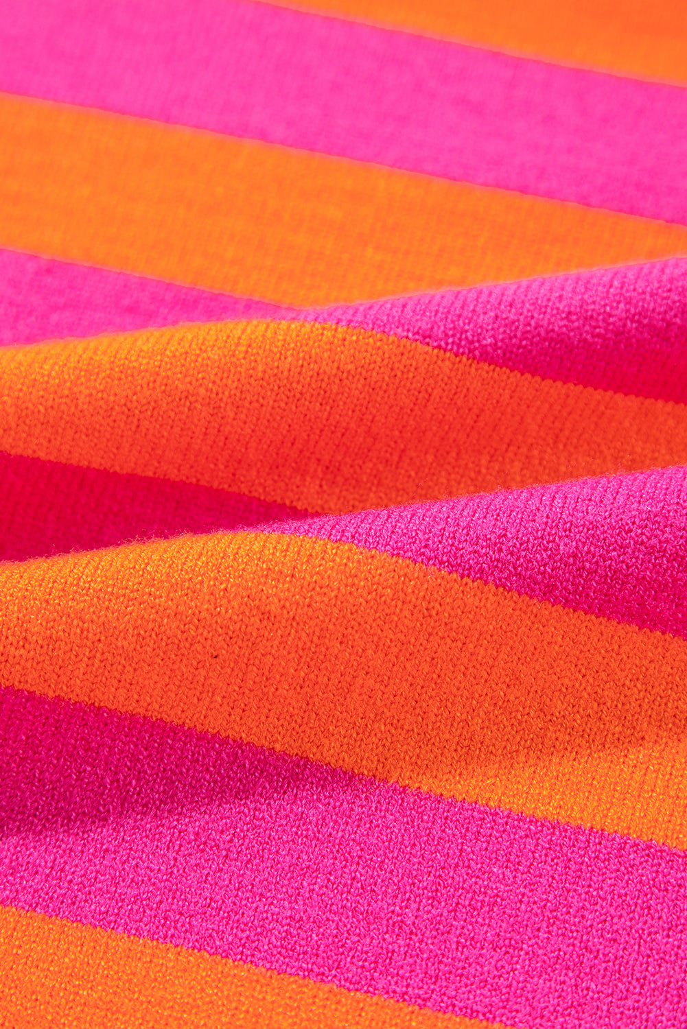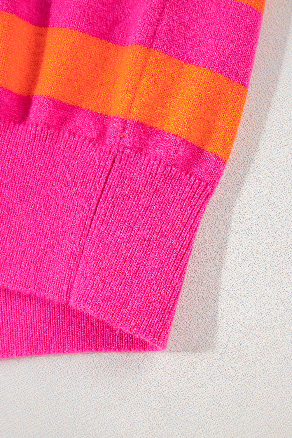 Rose Stripe Shoulder Pad Round Neck Sweater