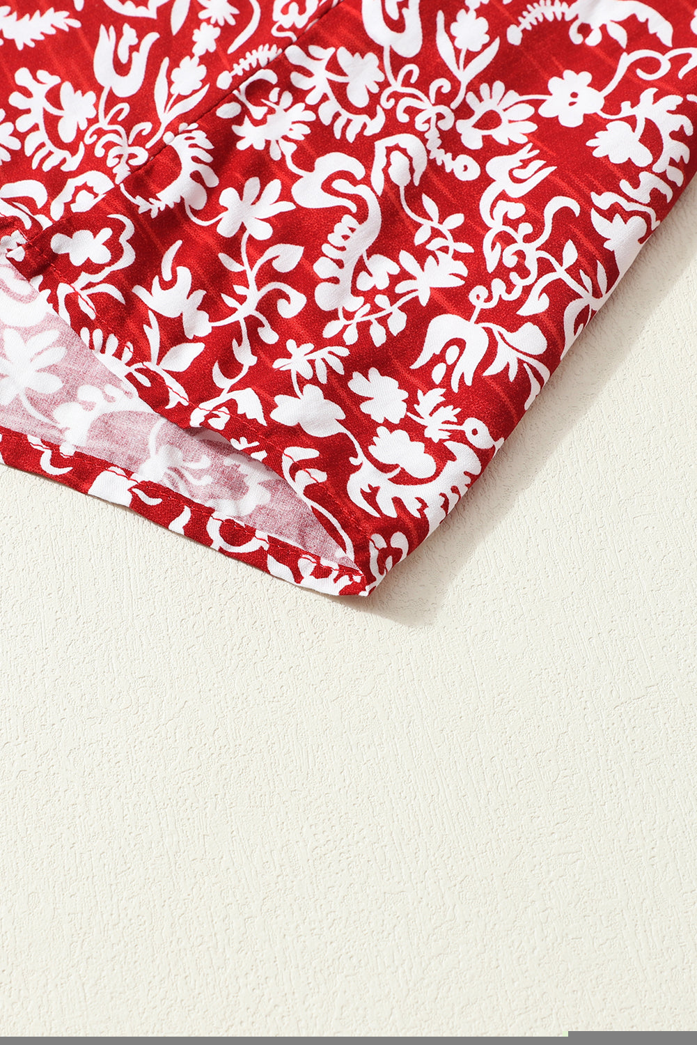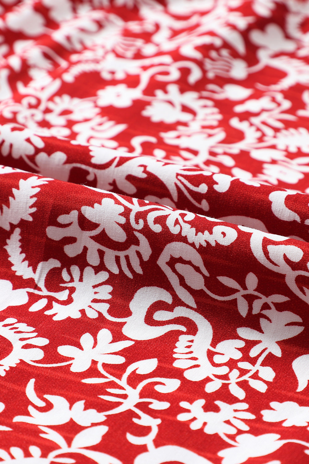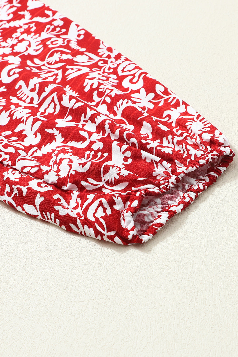 Russet Orange Floral Print Smocked Tie Neck Blouse