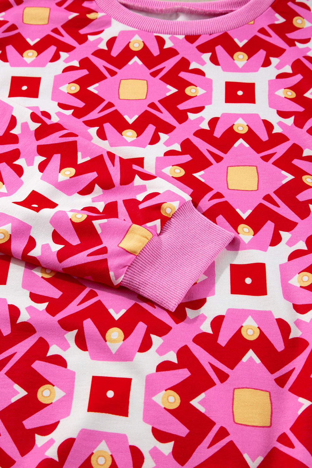 Sachet Pink Geometric Print Long Sleeve Top and Drawstring Shorts Set