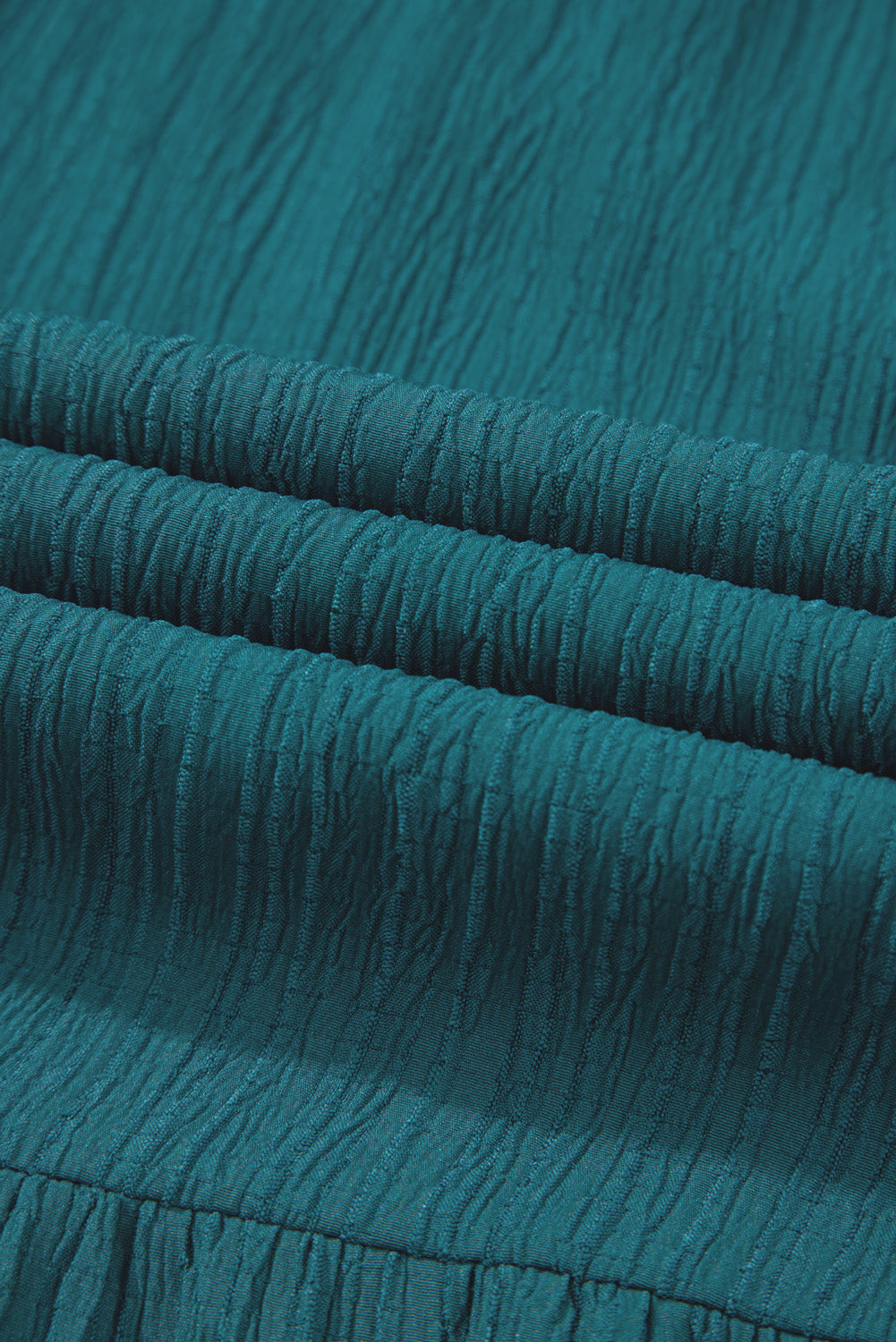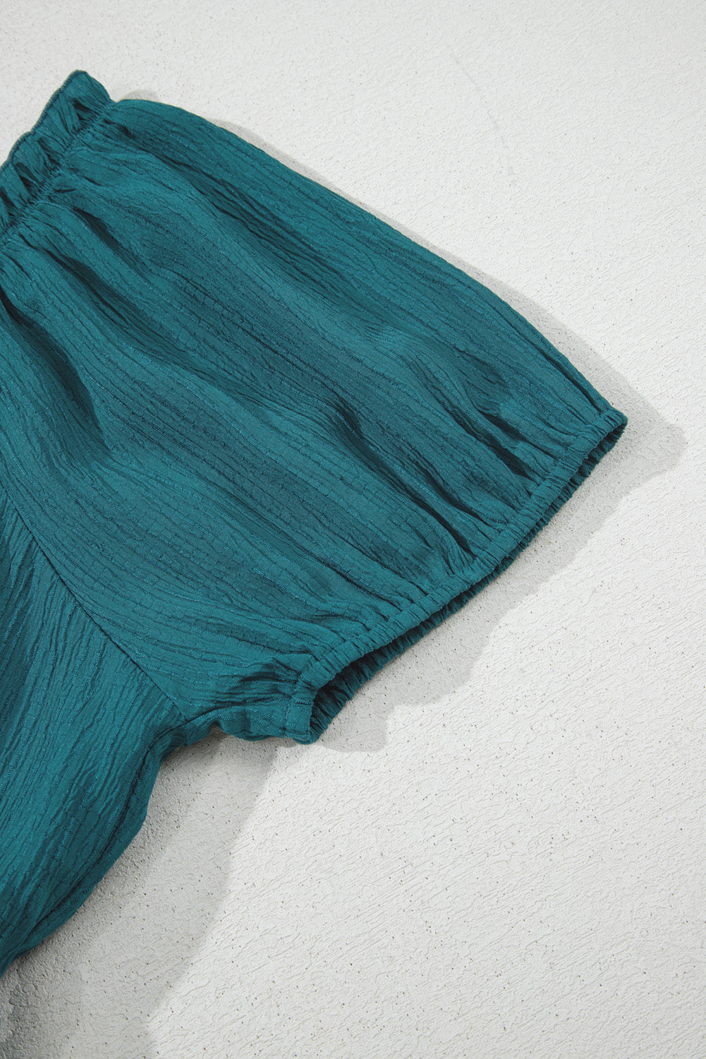 Stylish puff sleeves and ruffled hem add a touch of elegance.