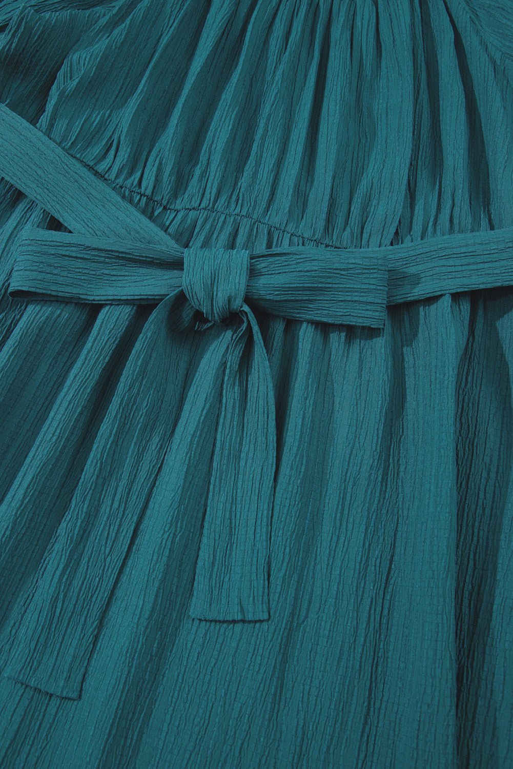 Skobeloff Frilled U Neck Puff Sleeve Belted Ruffle Hem Plus Size Midi Dress