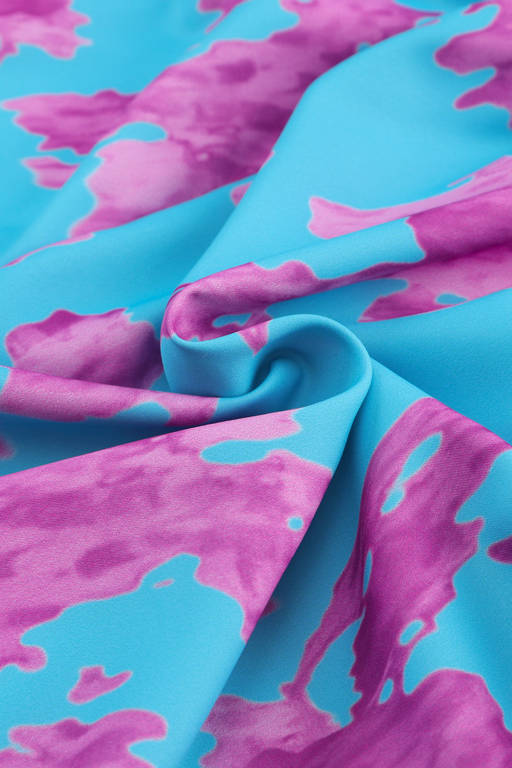 Sky Blue Abstract Print Elastic Waist Pocket Wide-Leg Shorts