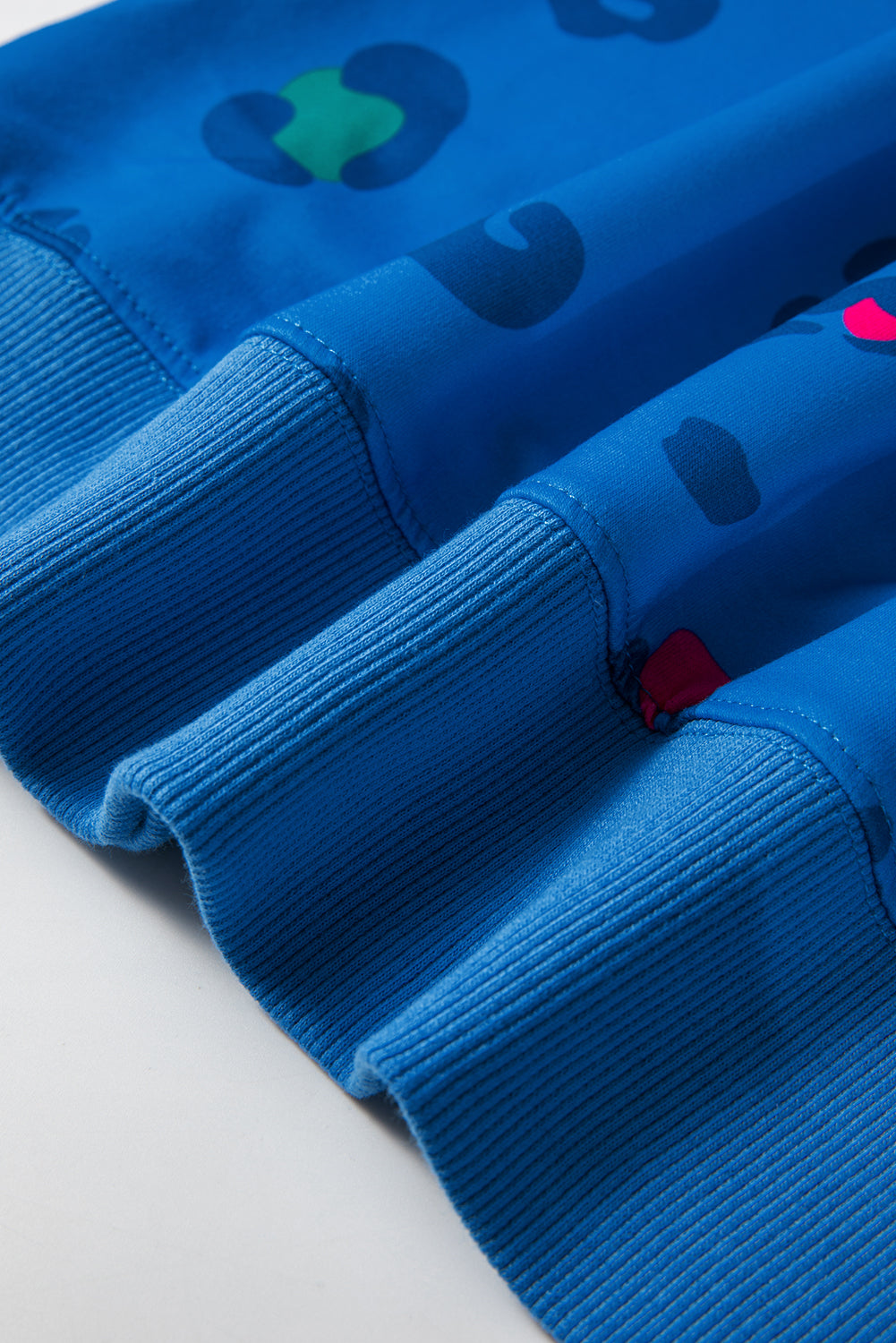 Sky Blue Leopard Ribbed Edge Drop Shoulder Pullover Sweatshirt