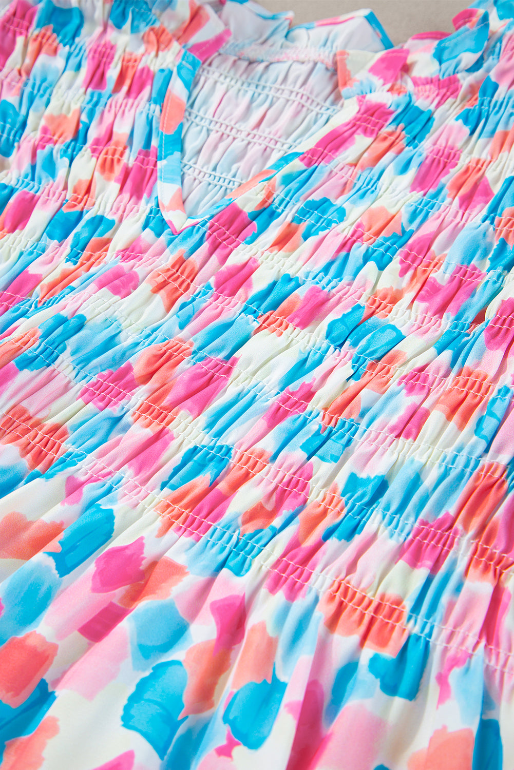 Sky Blue Shirred Yoke Ruffled Abstract Printed Blouse
