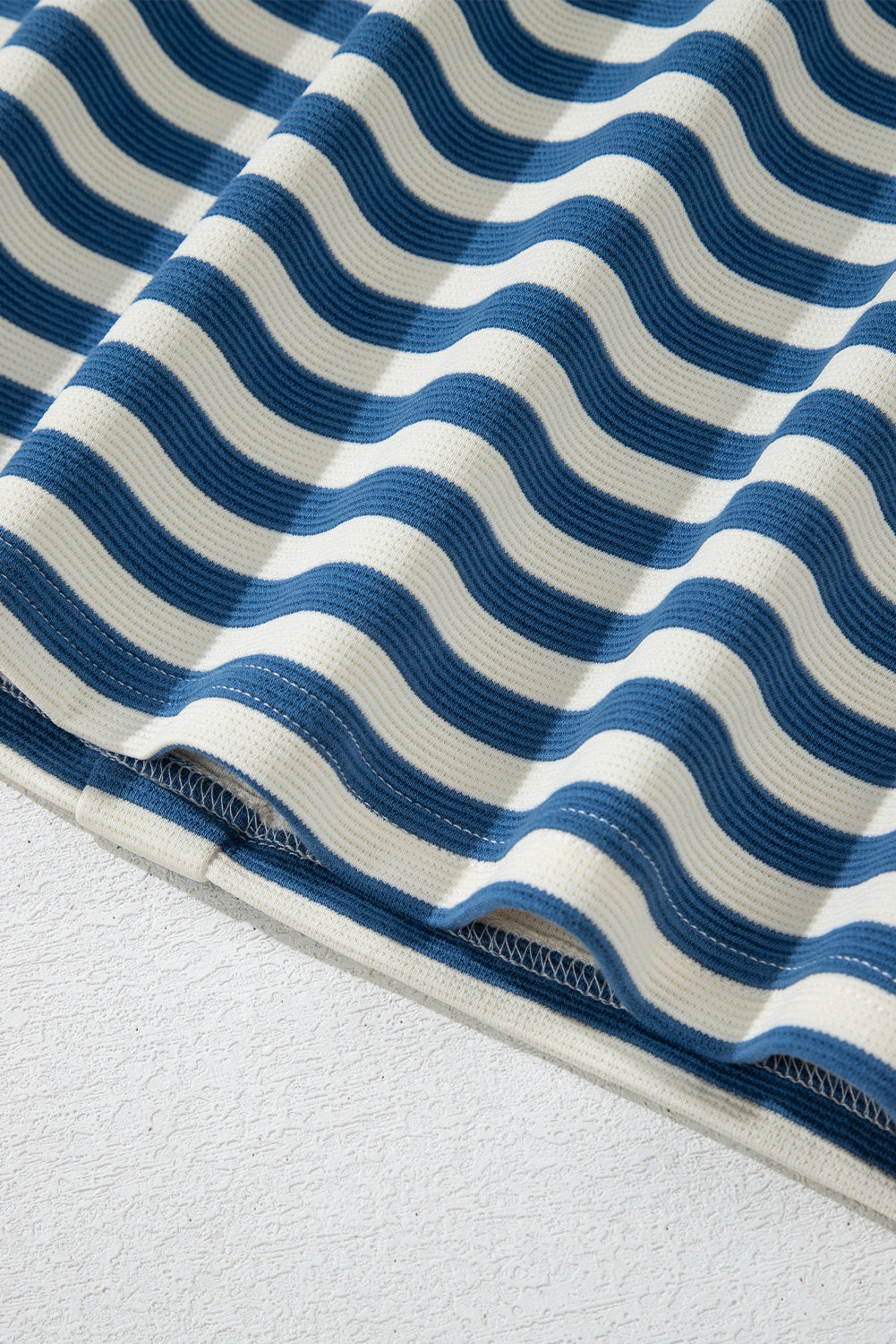 The top showcases a timeless striped pattern adding a classic and versatile touch.
