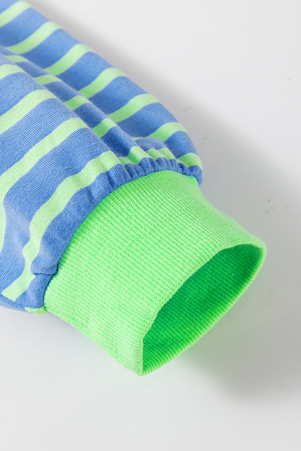 Sky Blue Stripe Contrast Trim High Low Pullover Tunic Sweatshirt