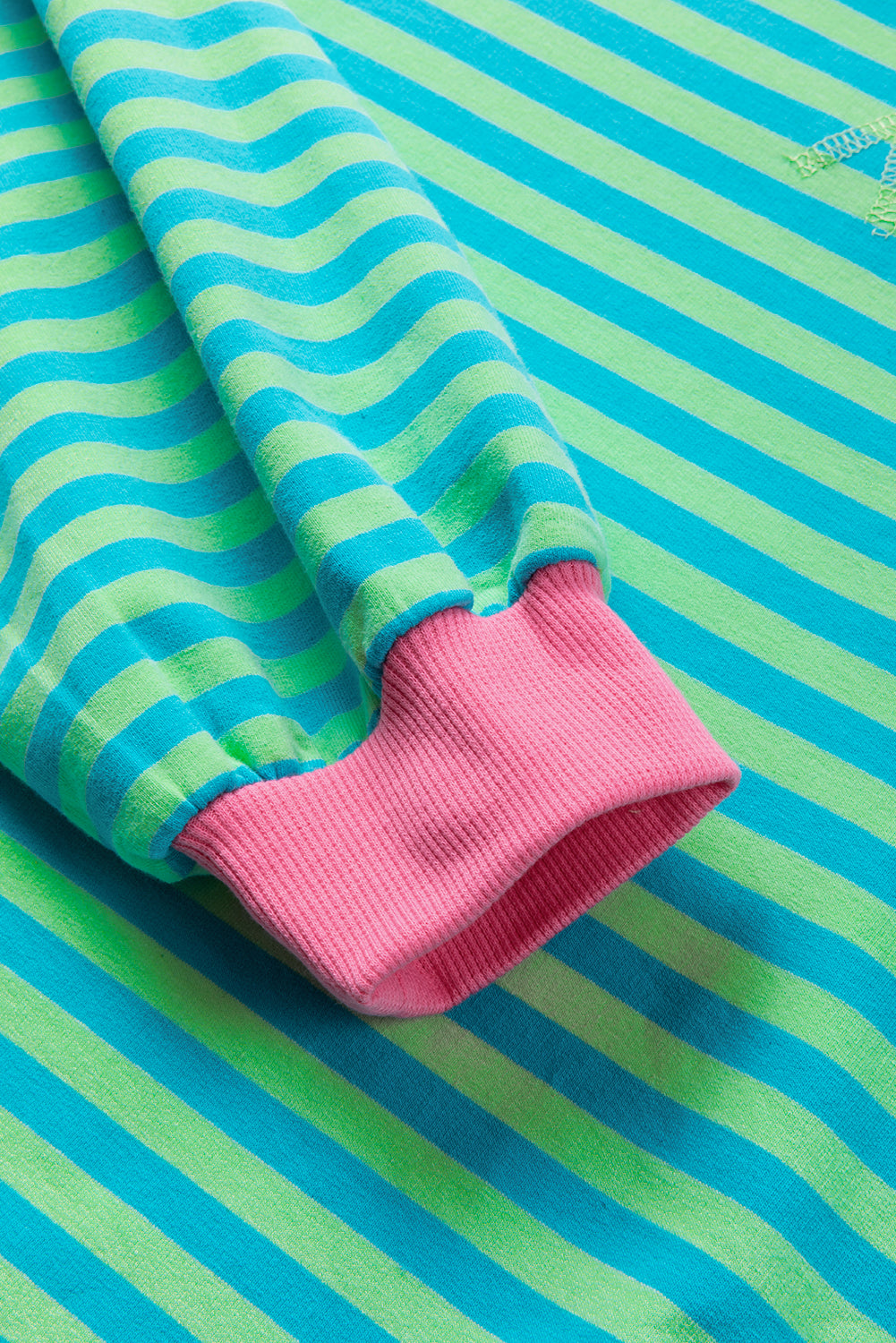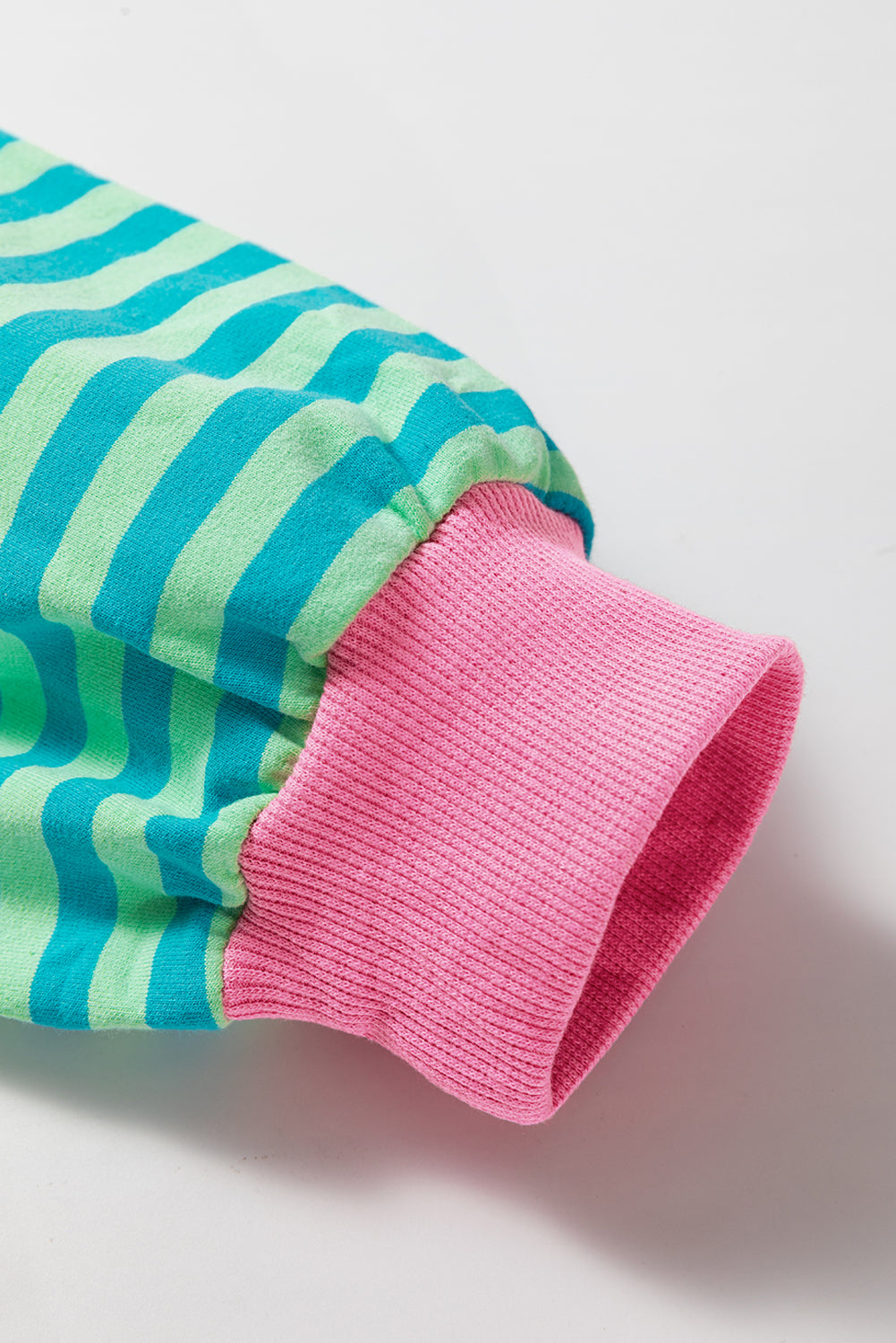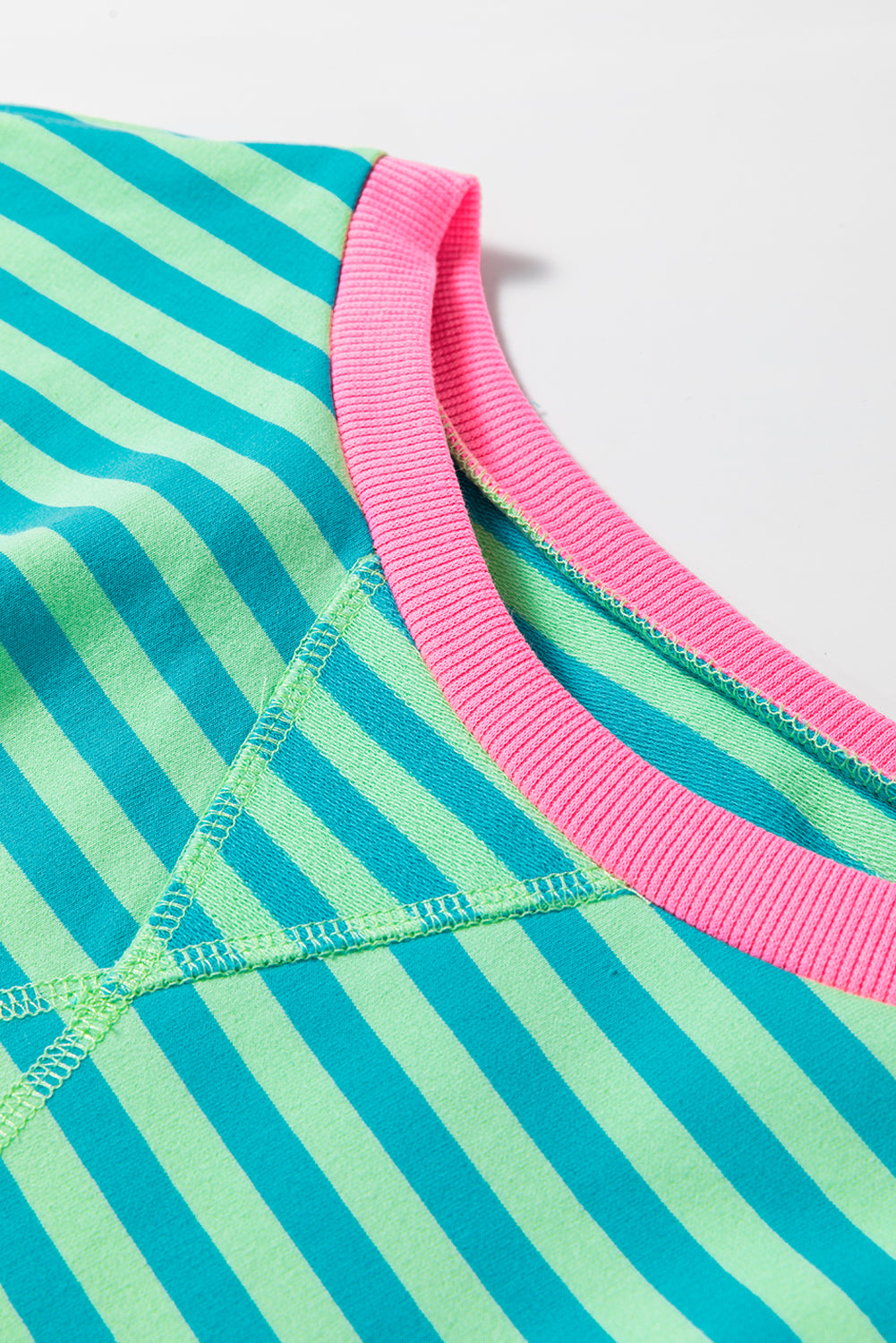 Sky Blue Stripe Oversized Contrast Trim Pullover Sweatshirt