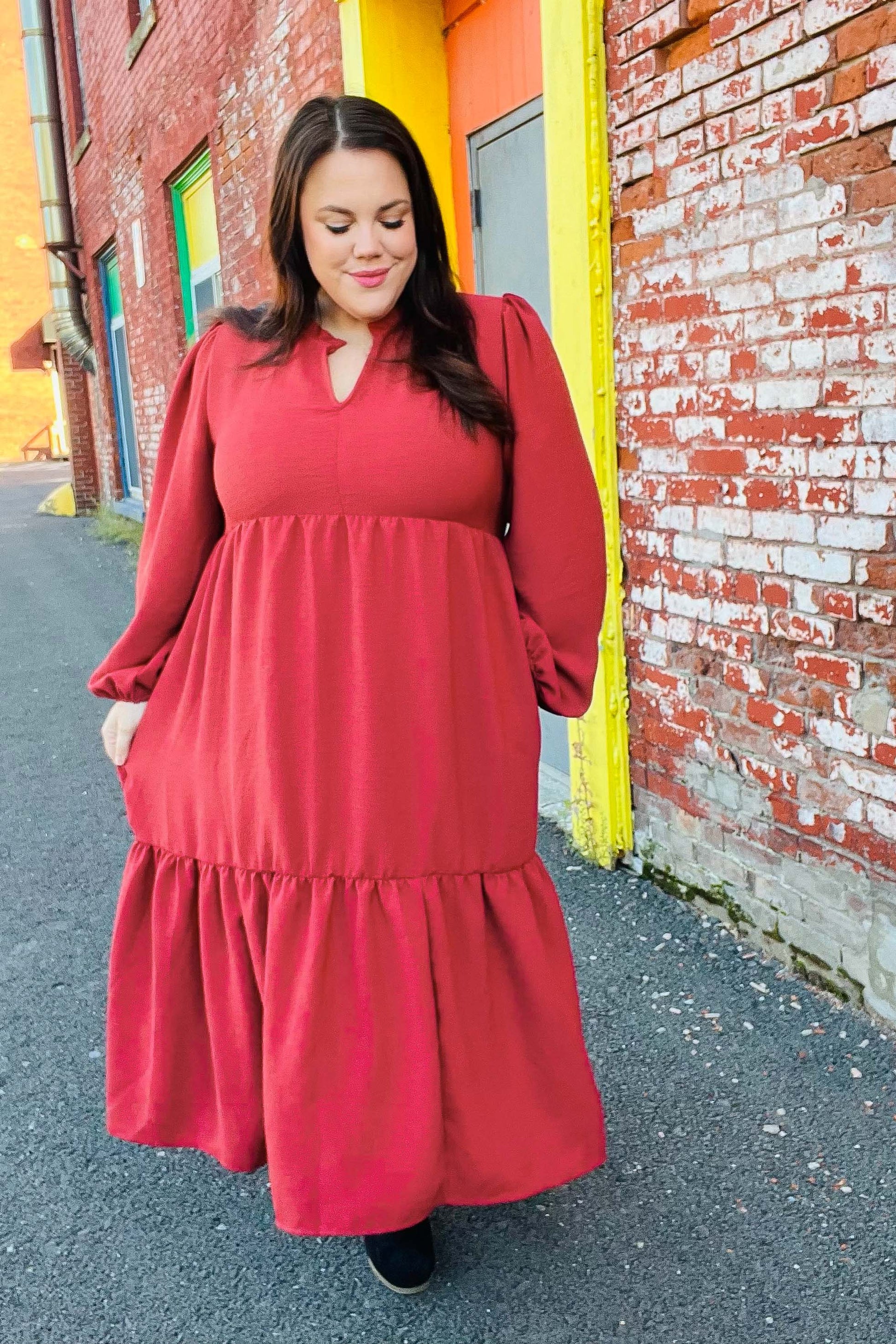 You will love this notched neck bubble sleeve elastic waist maxi with frill details, and a tiered ruffle hemline. Side pockets complete this versatile and stunning maxi.