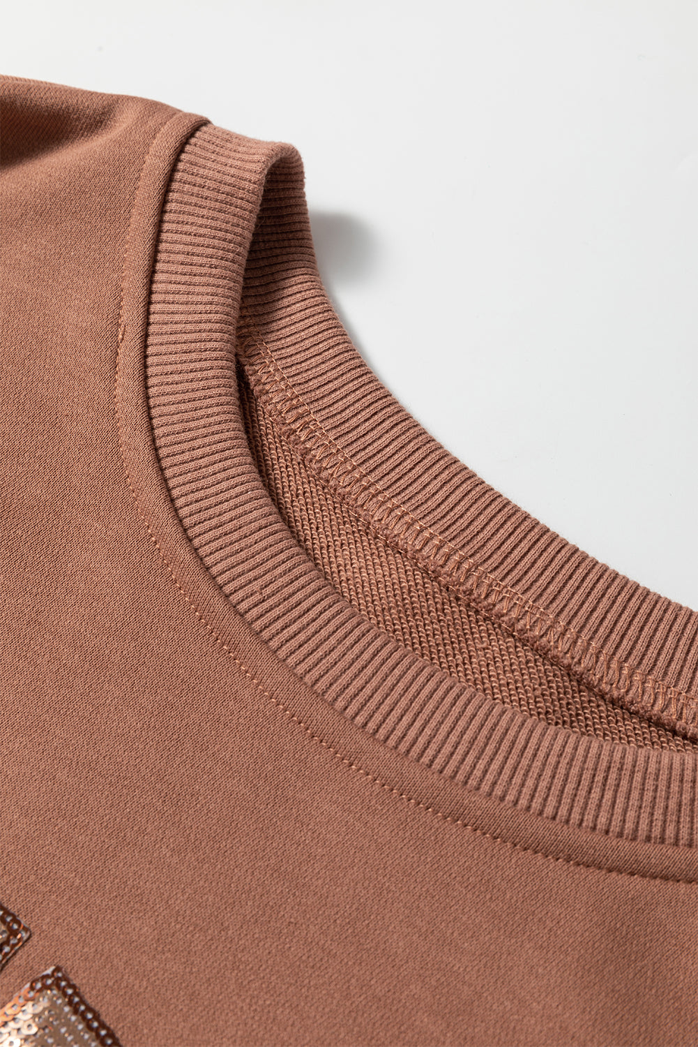 Straw Yellow Sequined COFFEE Loose Fit Sweatshirt and Shorts Set