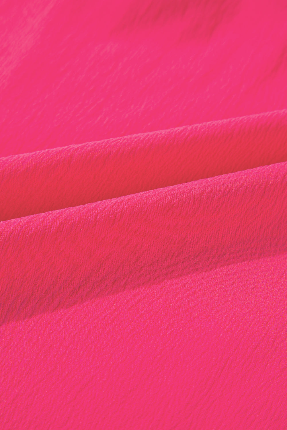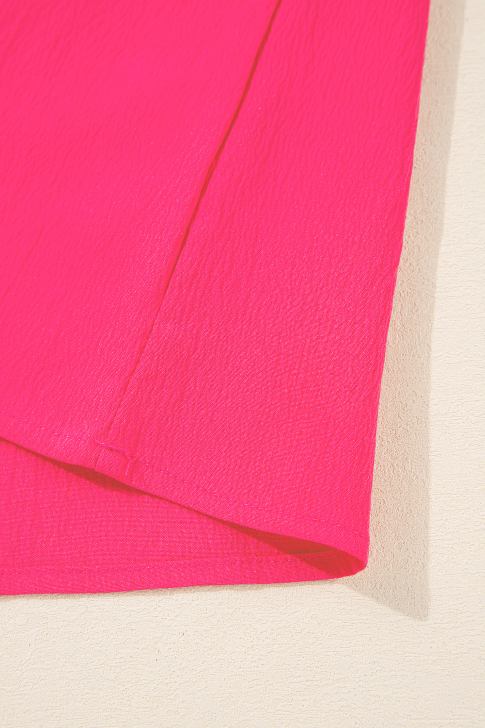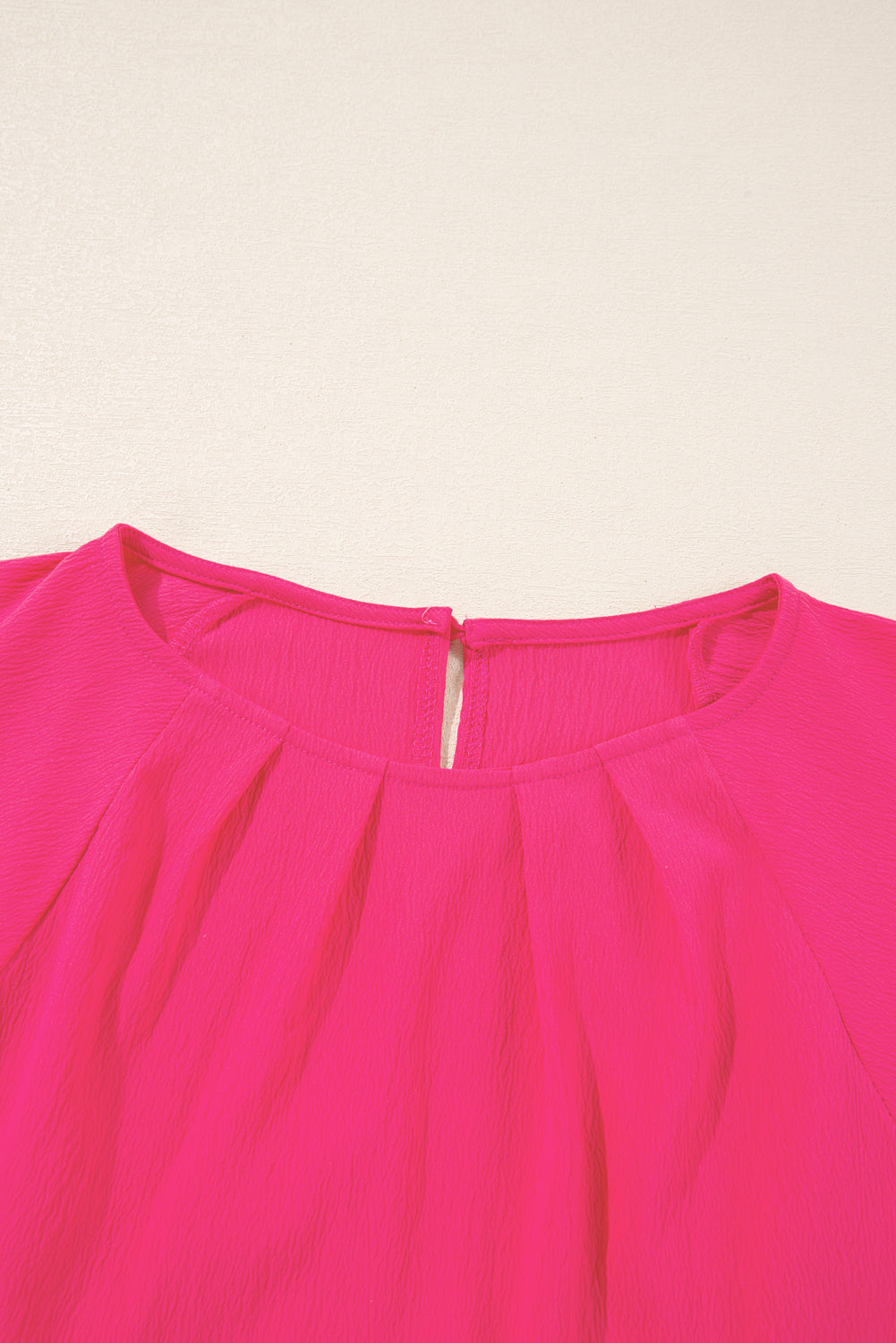 Strawberry Pink Floral Embroidered Flutter Sleeve Pleated O Neck Plus Size Blouse