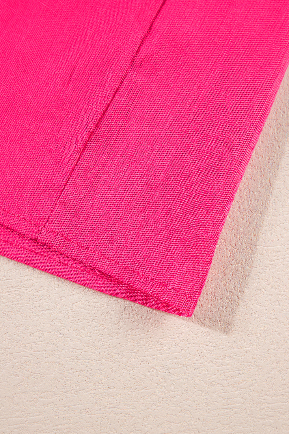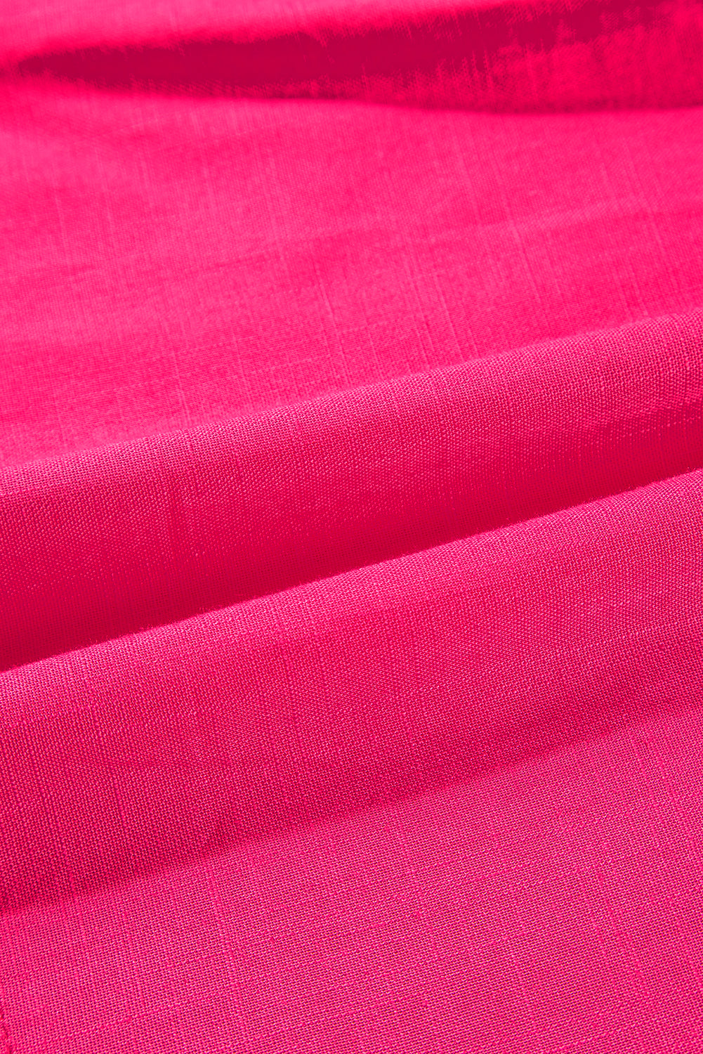 Strawberry Pink Geometric Embroidered Tassel Tie V Neck Blouse