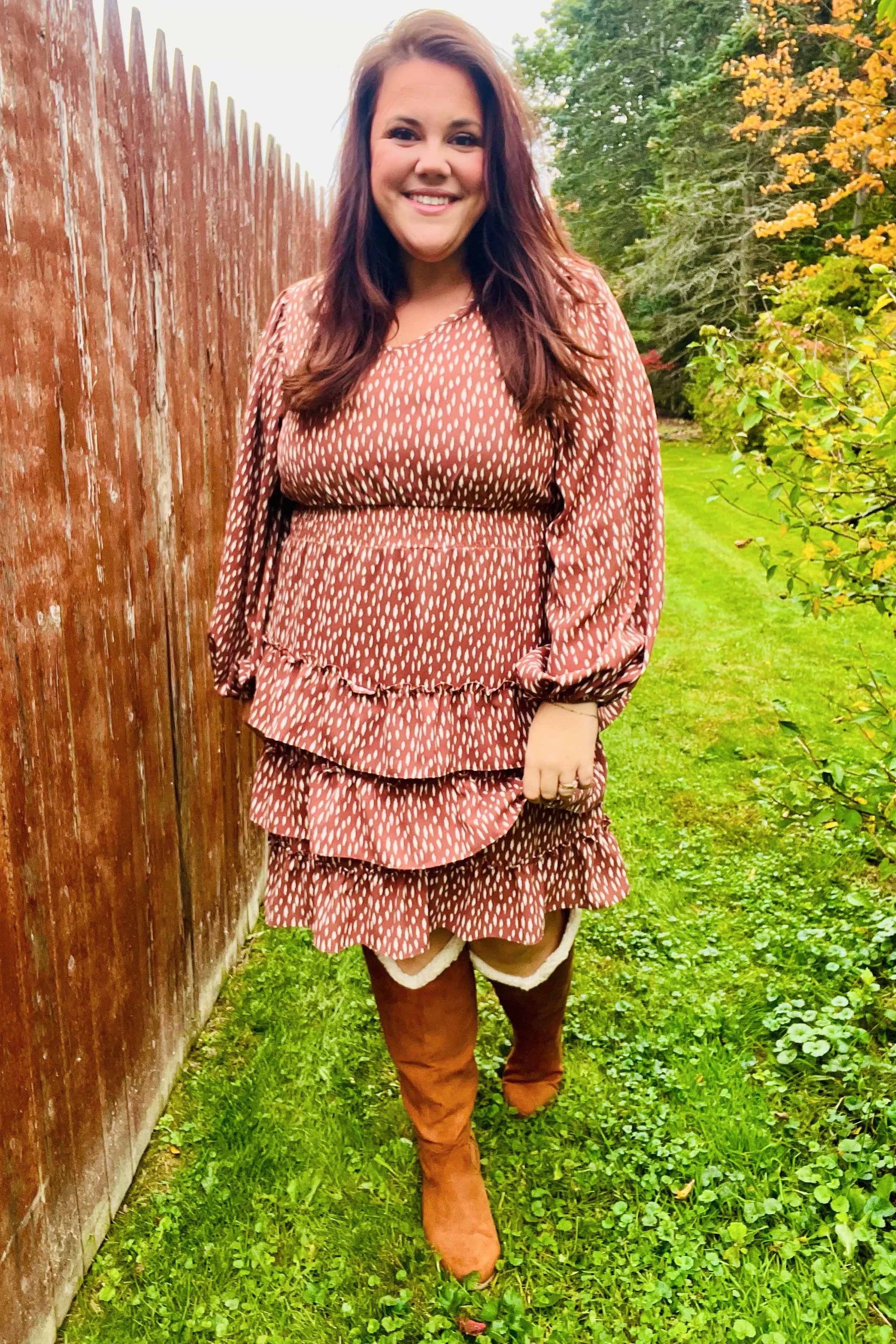 Feminine Flair Terracotta Leopard Print Ruffle Tiered Dress
