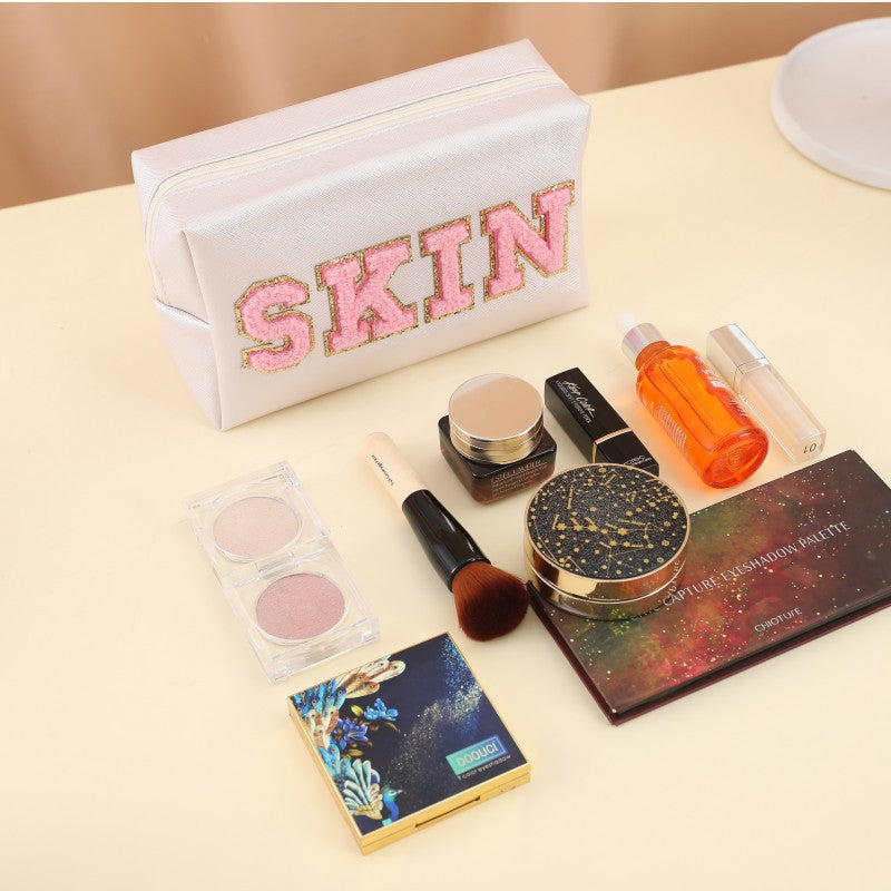 Towel Embroidery Letter Sticker Makeup Outdoor Travel Toiletry Bag