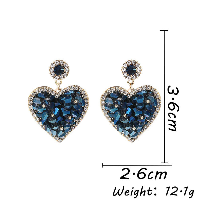Triangle Crystal Three-dimensional Love Heart Earrings Female Copper Inlaid Zircon Ear Rings