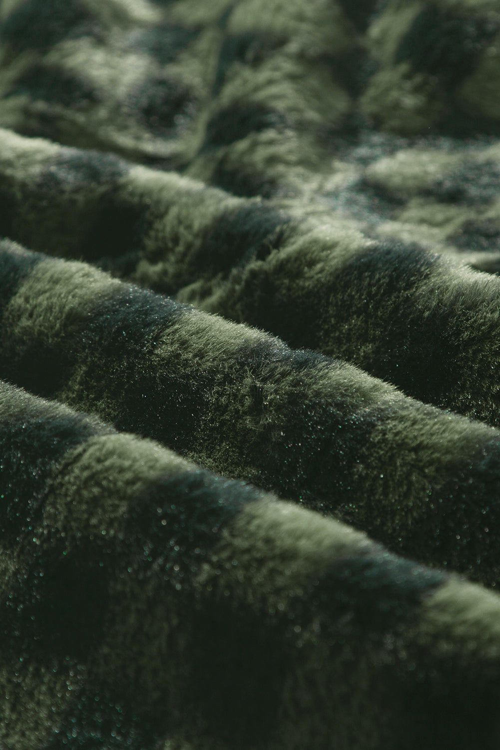 Vineyard Green Fleece Checkerboard Flap Pocket Snap Button Jacket
