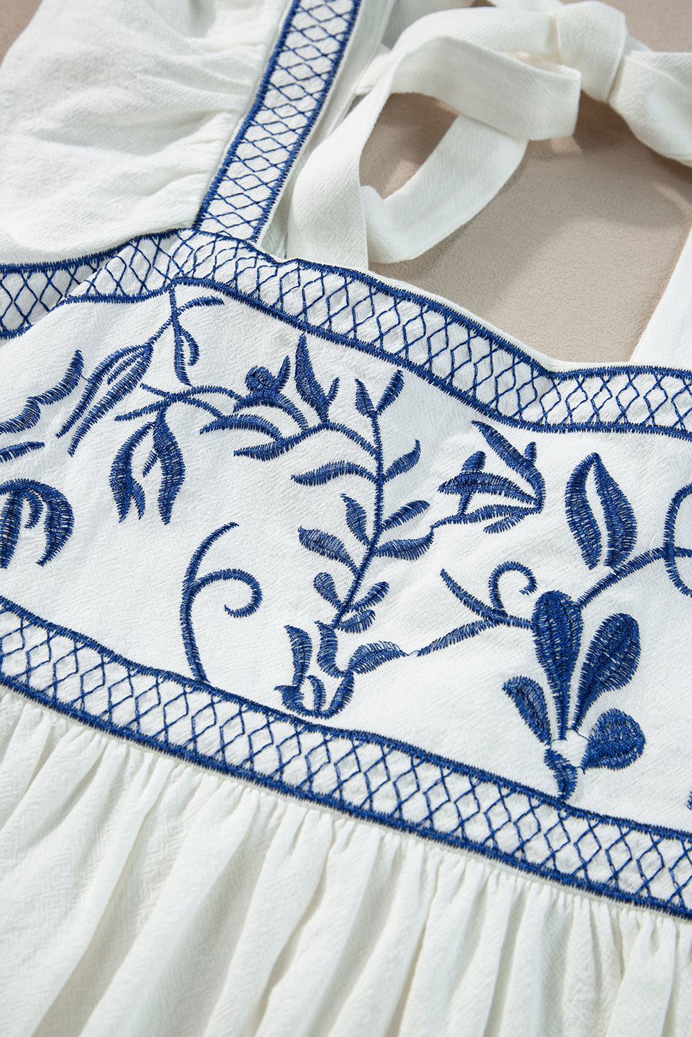 Exquisite embroidery adorns the bust area, adding an intricate and eye-catching detail