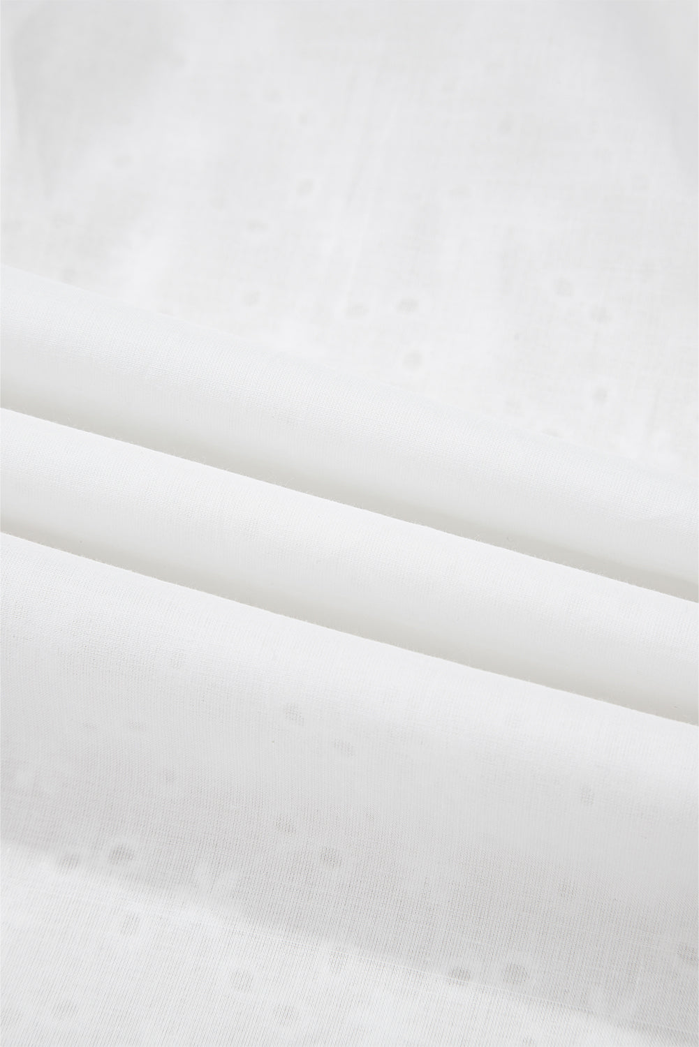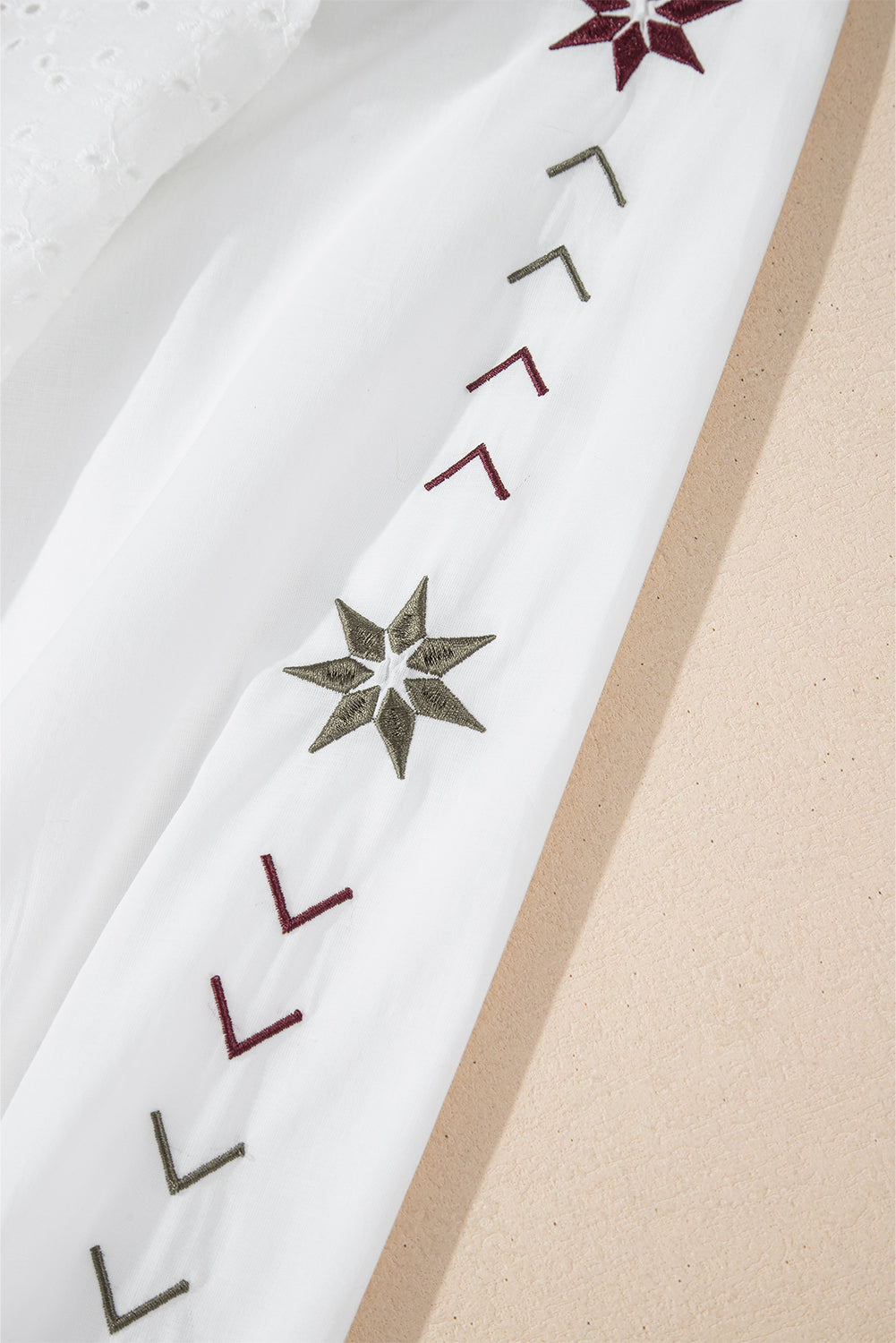 White Floral Embroidered Puff Sleeve Eyelet Patchwork Shirt