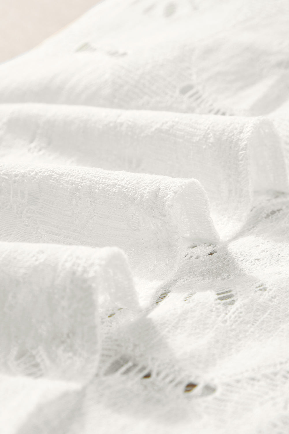 White Flower Eyelet Jacquard Keyhole Flounce Sleeve Top