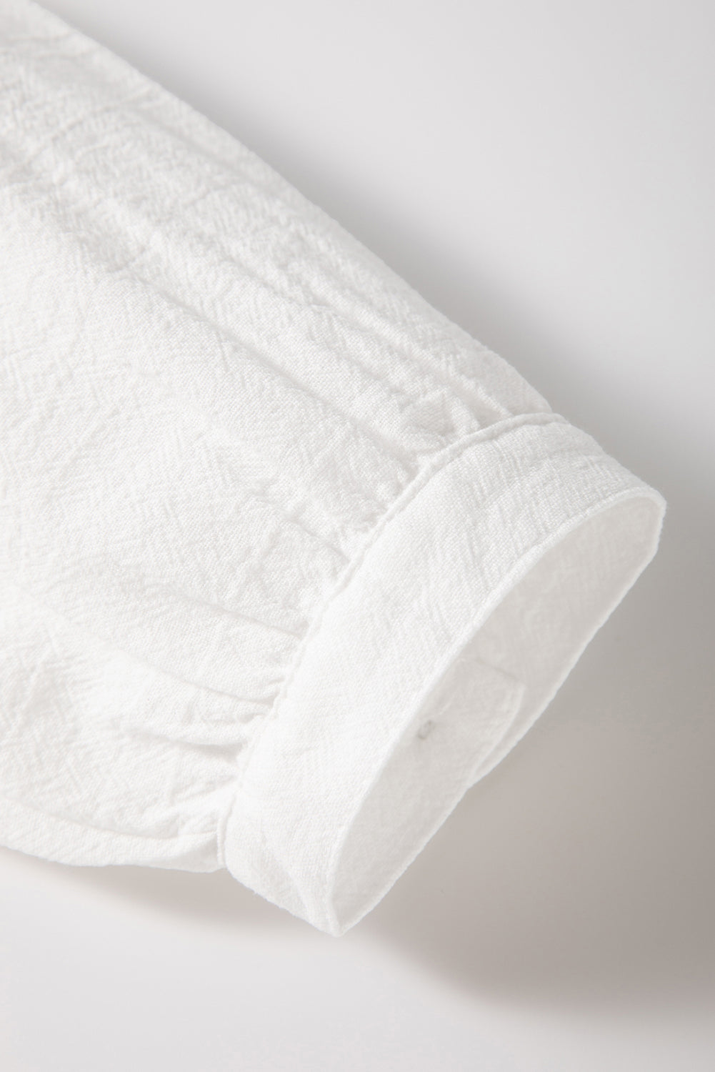 White Geometric Embroidered Long Sleeve Buttoned Blouse