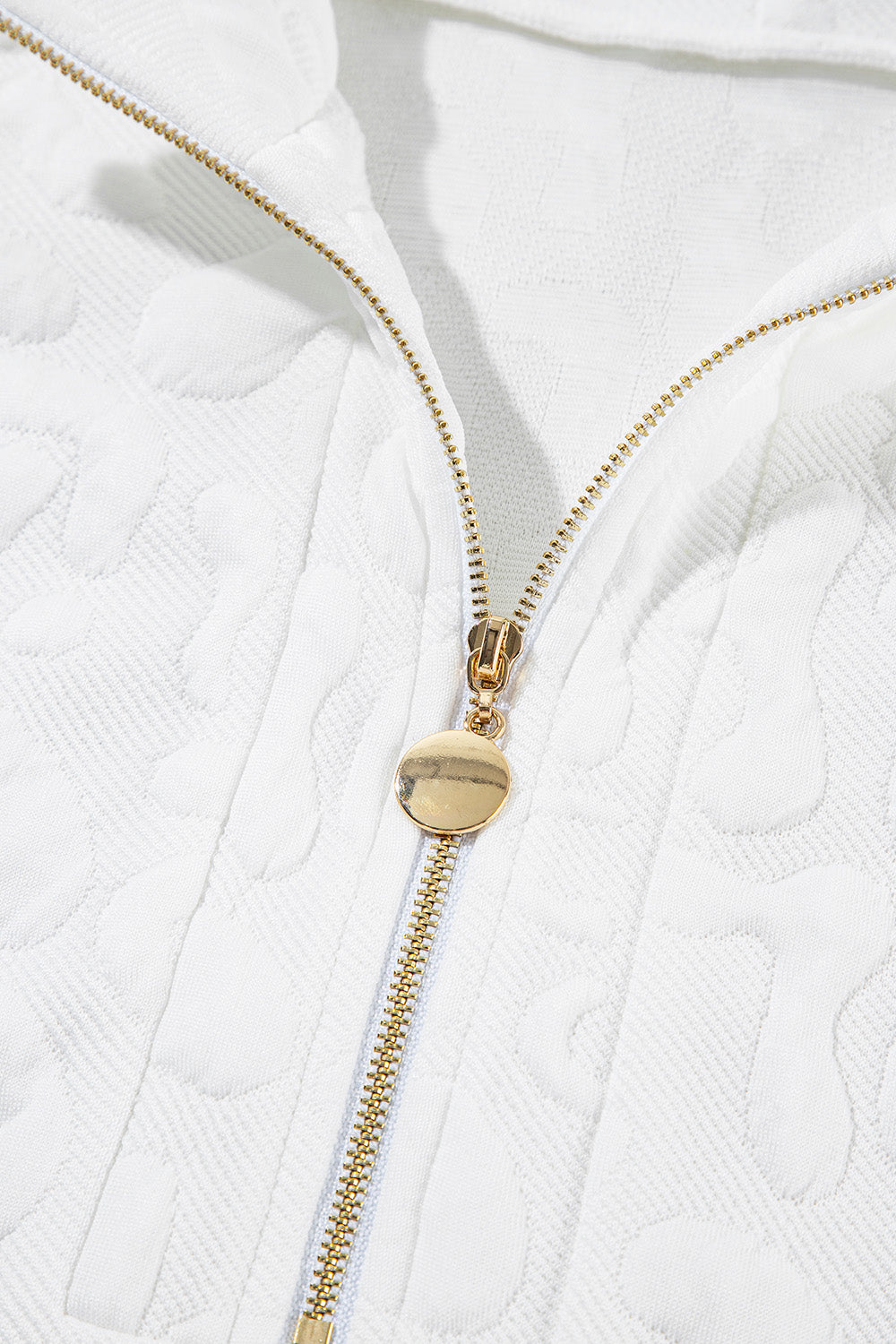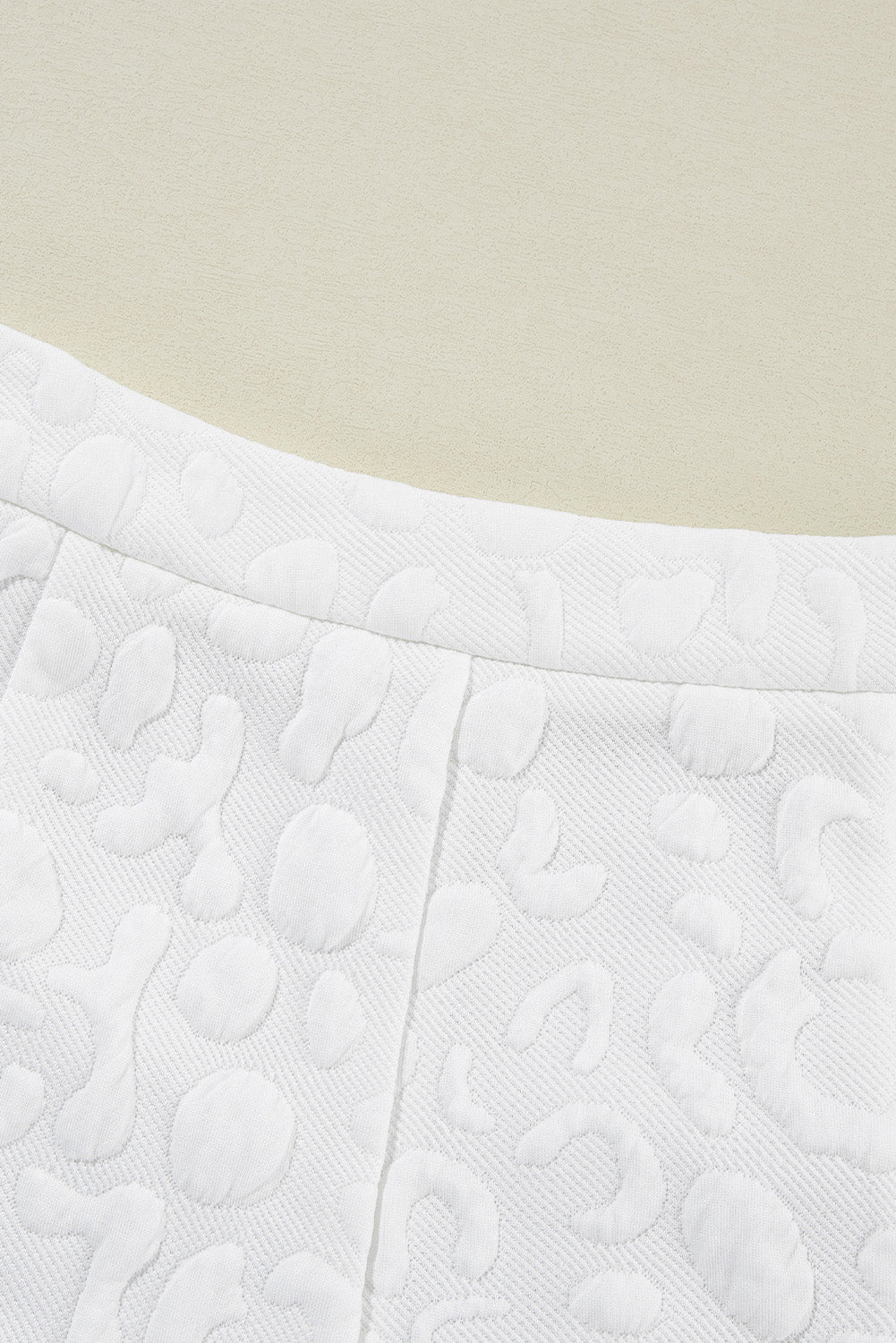 White Leopard Jacquard Quarter Zip Tee and Shorts Set