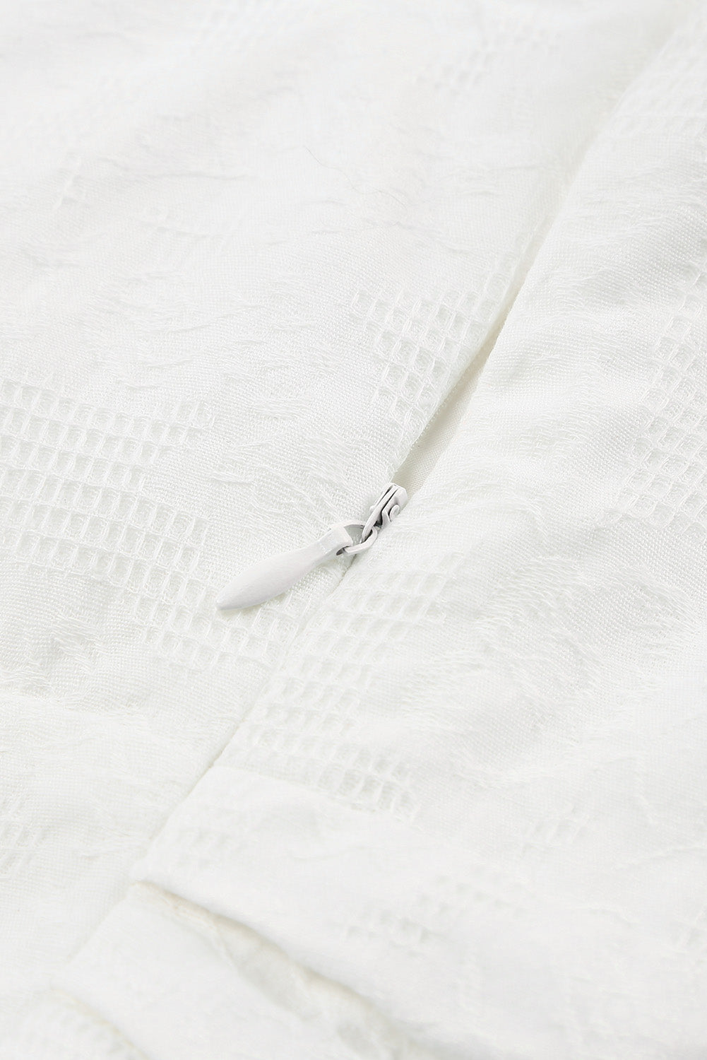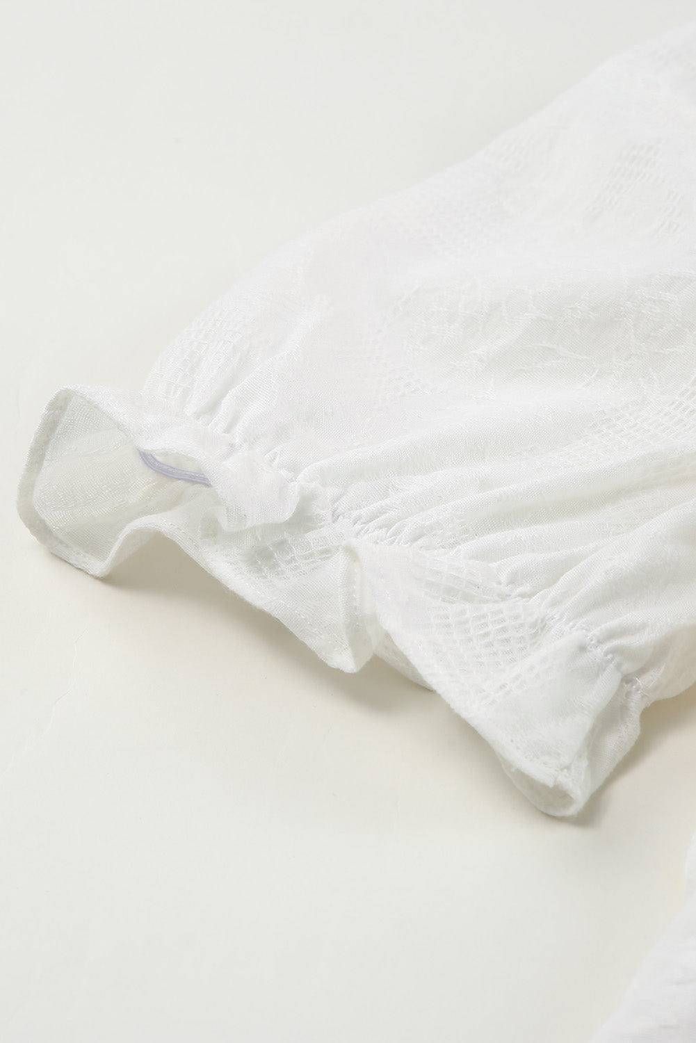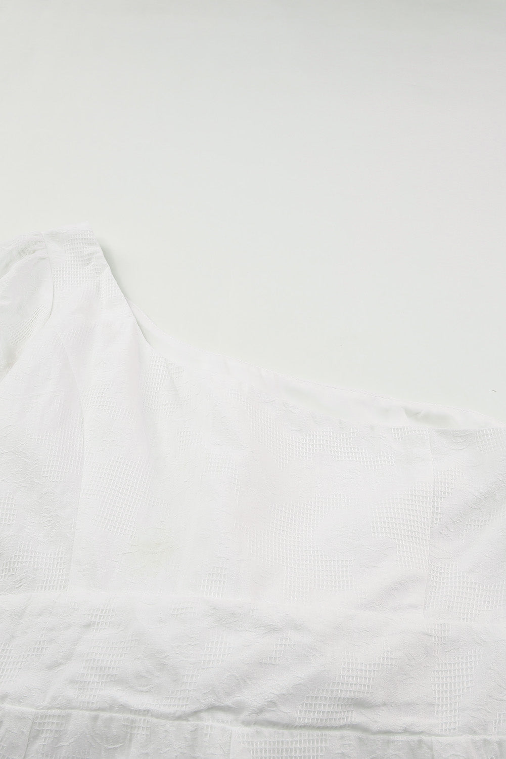 White One-shoulder Puff Sleeves Romper with Ruffle Trim