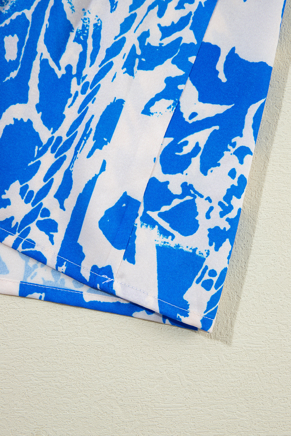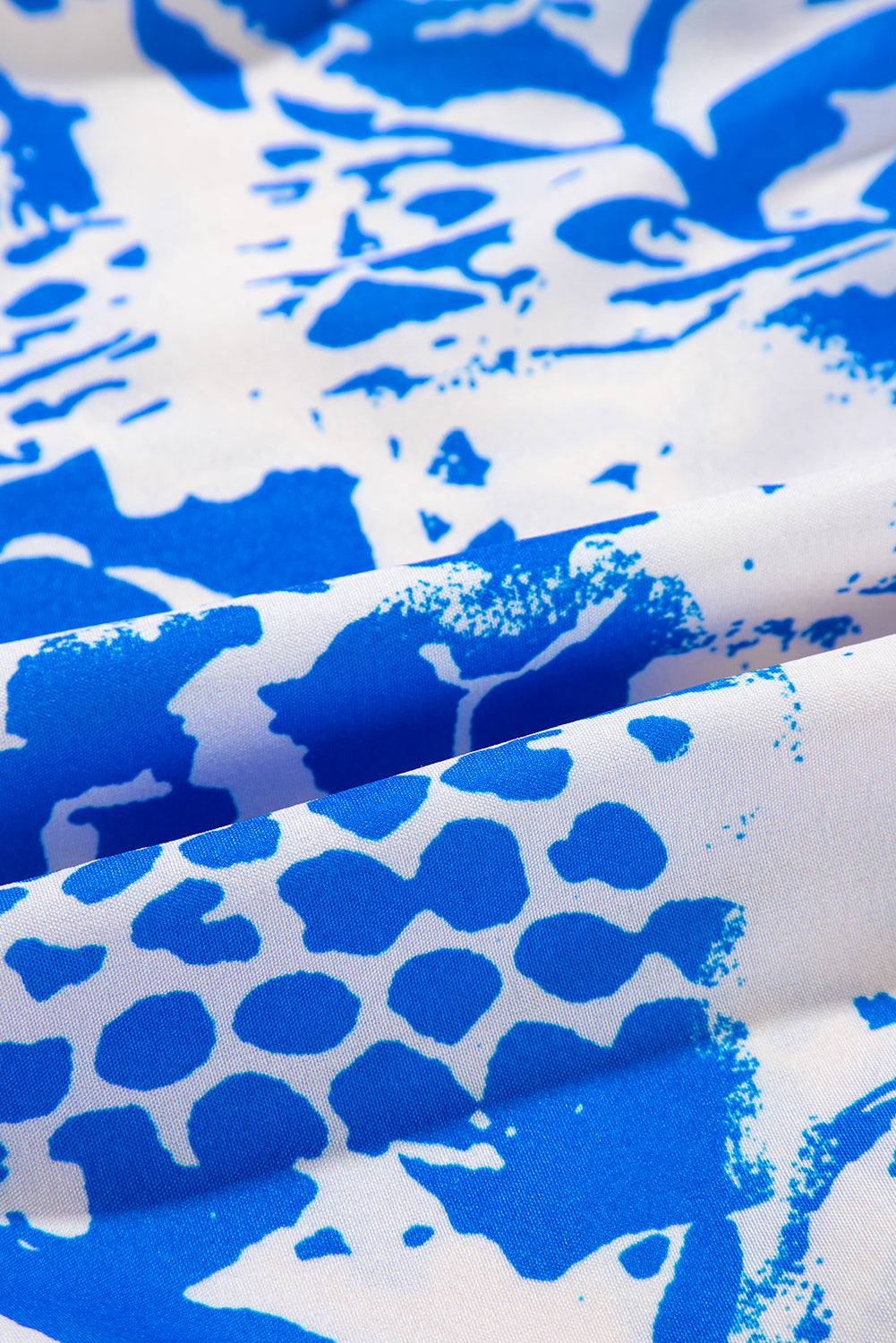 White Printed Plus Size V Neck Ruffle Sleeve Mini Dress