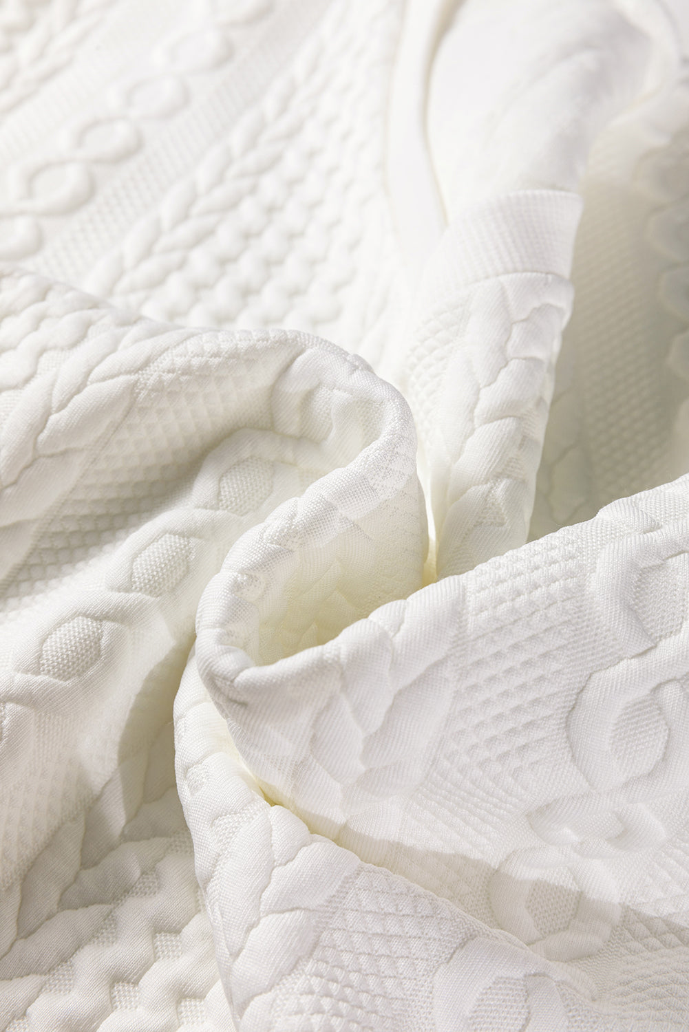 White Solid Color Textured V Neck Drop Shoulder Knit Top