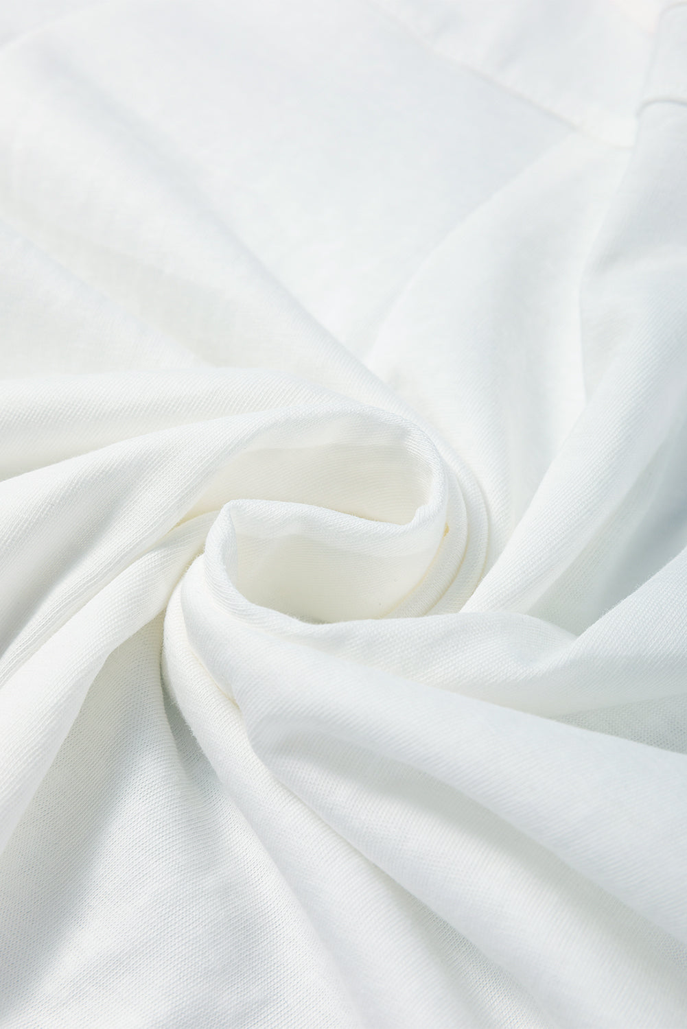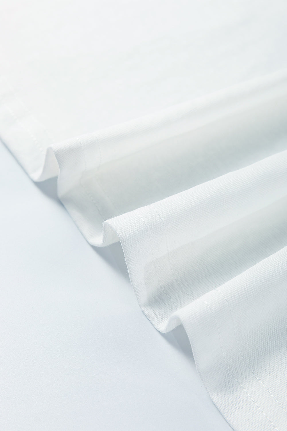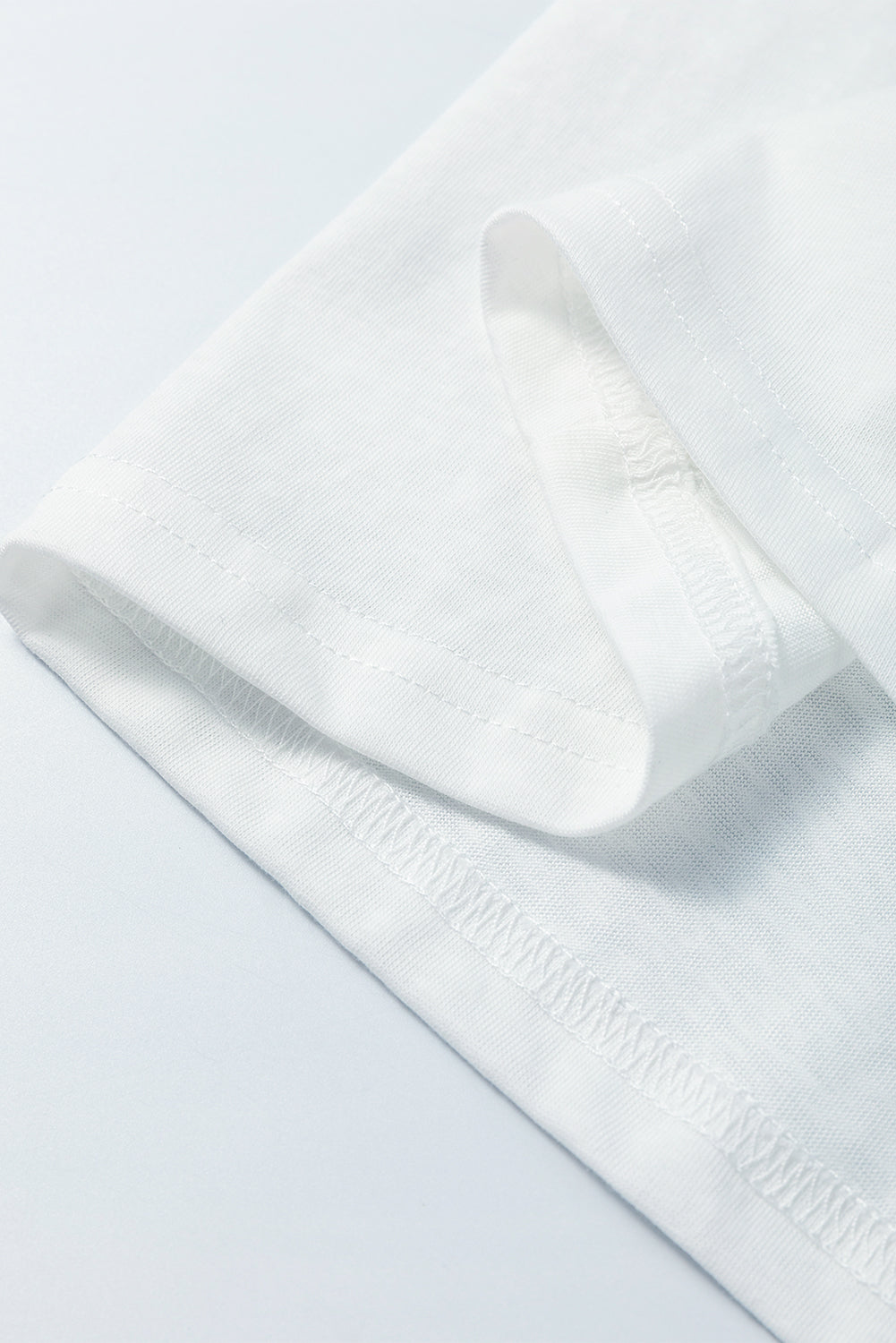 White Tropical Leaf Printed Patchwork Sleeve Round Neck Top