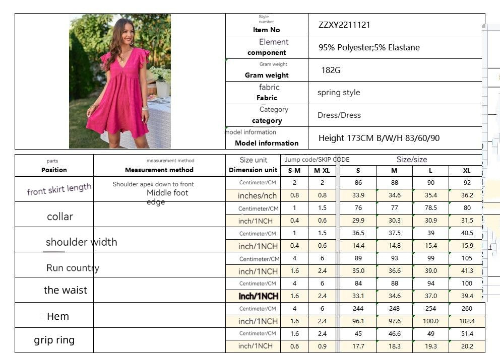 Women's Clothing V-neck Ruffle Short Skirt Solid Color Elegant Dress