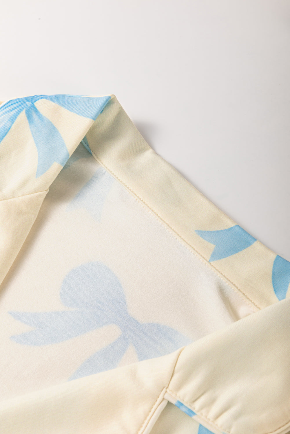 Yellow Bow Printed Short Sleeve Shirt Shorts Pajama Set